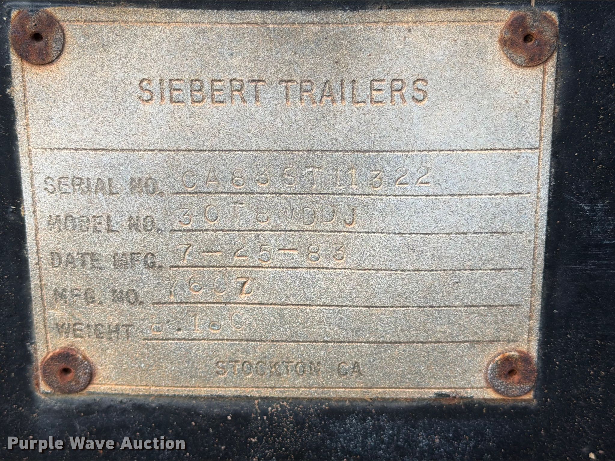 1983 Siebert 30T8WDDJ jeep axle. Serial: CA83ST11322. Dimensions Overall Length: 29' 9", Width: 96". Chassis Suspension: Walking beam, Brakes: Air, Axles: Tandem. Tires Steel wheels, Size: 11R24.5. Transfer of ownership documentation will be a bill of sale. CTC Transportation. 3540 Euless South Main Street. Euless, TX 76040