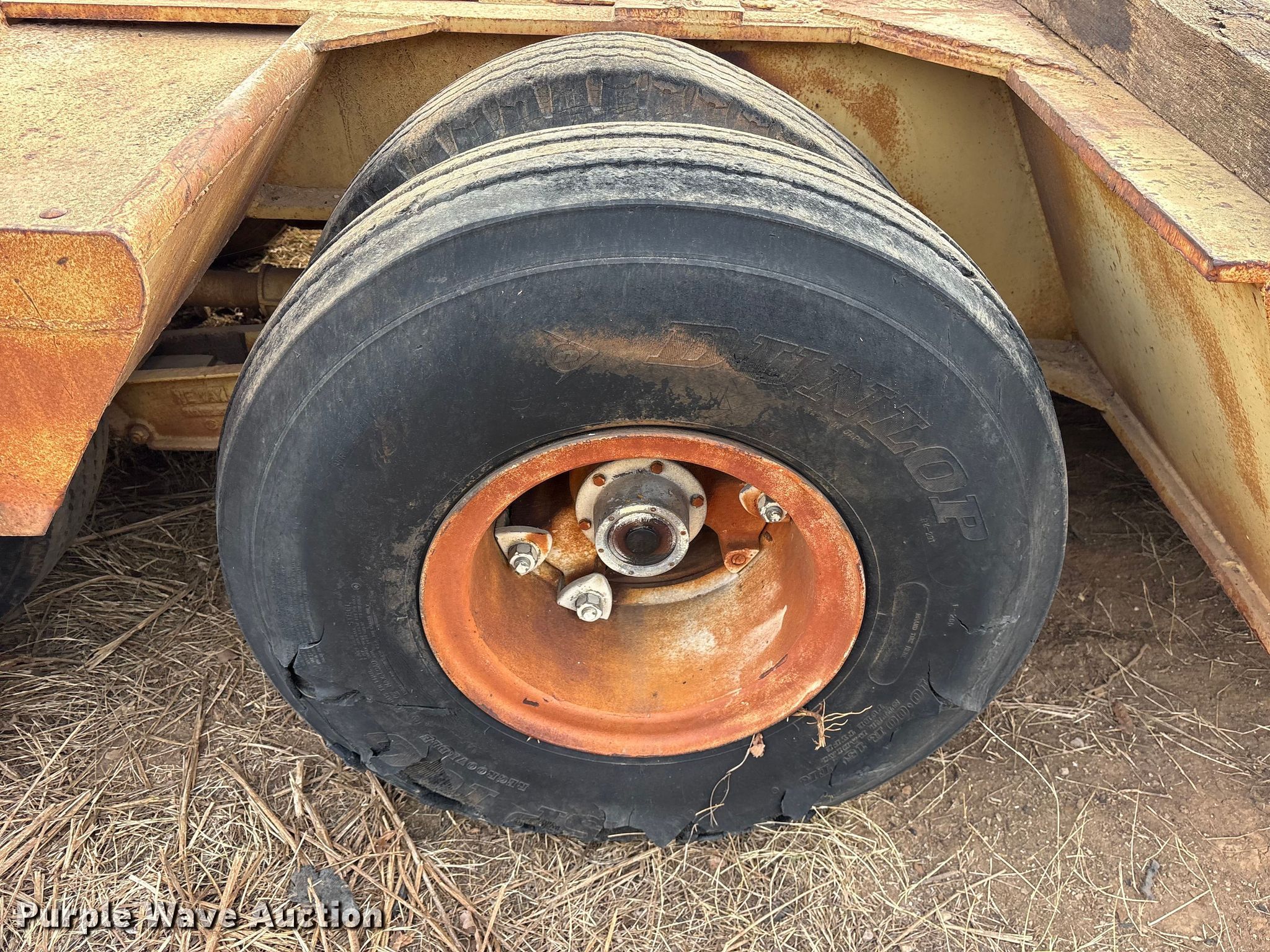 1974 Load King lowboy equipment trailer. VIN: 5199, Unit #: 564. Dimensions Overall Length: 42', Width: 7' 10", Deck Length: 17', Width: 7' 10", Deck height: 35". Features Deck type: Steel, Wood, Outriggers: Swing-out Board size: 12", Neck type: Folding. Chassis Suspension: Spring, Brakes: Air, Axles: Triple. Tires Steel wheels, Size: 10.00R15TR. Notes Tires damaged, needs replaced. Oklahoma title. Title distribution may be delayed up to 30 days from verification of funds. CTC Transportation. 3540 Euless South Main Street. Euless, TX 76040