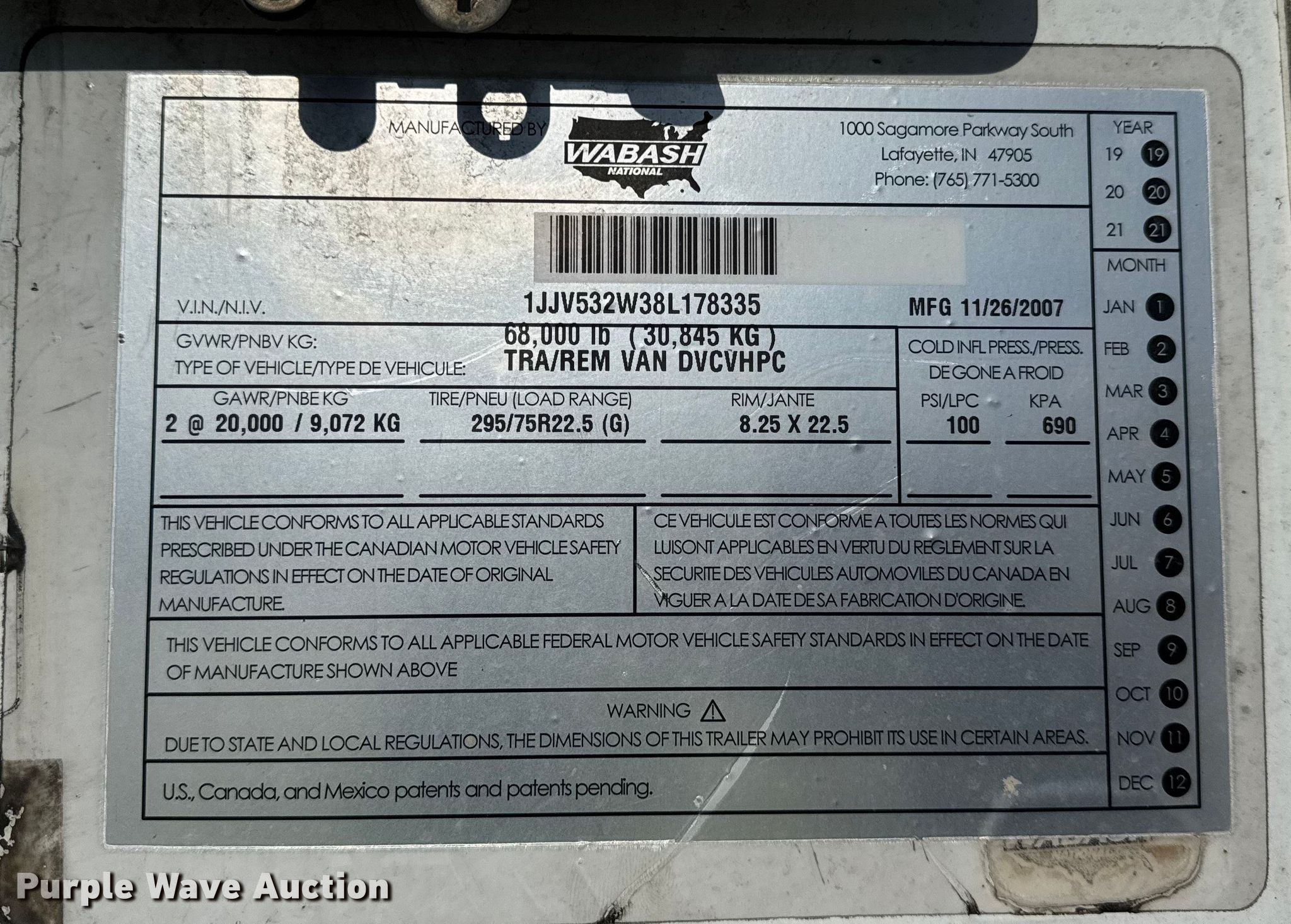Purple Wave is selling a used Dry Van Trailer in Wisconsin. This item is a 2008 Wabash dry van trailer with the following: VIN: 1JJV532W38L178335