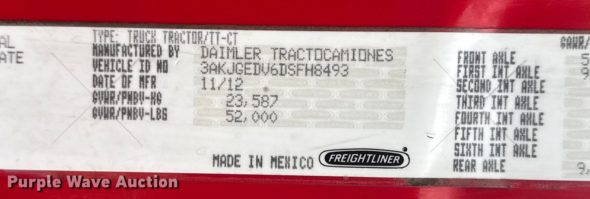 - VIN: 3AKJGEDV6DSFH8493