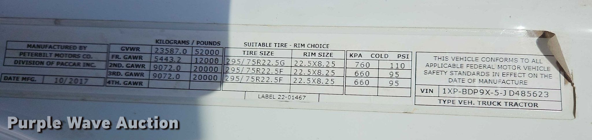 - VIN: 1XPBDP9X5JD485623
