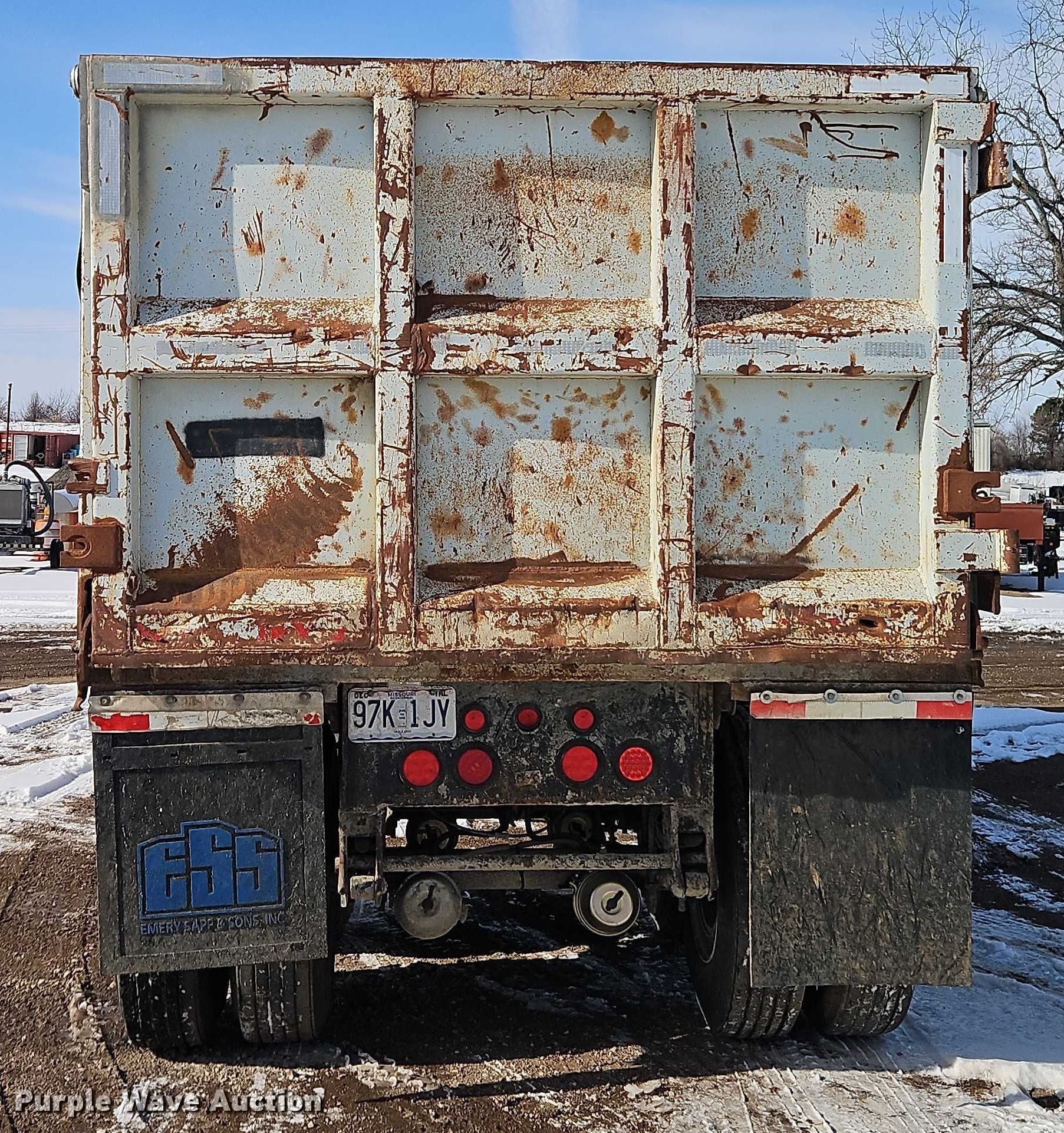 1970 Fruehauf end dump trailer. VIN: FWM628115, Unit #: 87-352. Dimensions Overall Length: 23' 6", Width: 96", Side height: 53". Features Body type: Steel, Ram: Single, End gate: Air operated, Roll tarp. Chassis Landing gear: Dual, Suspension: Spring, Brakes: Air, Axles: Tandem. Tires Steel wheels, Size: 11R22.5. Missouri title. Title distribution may be delayed up to 30 days from verification of funds. Emery Sapp & Sons, Inc.. Bucyrus, KS 66013