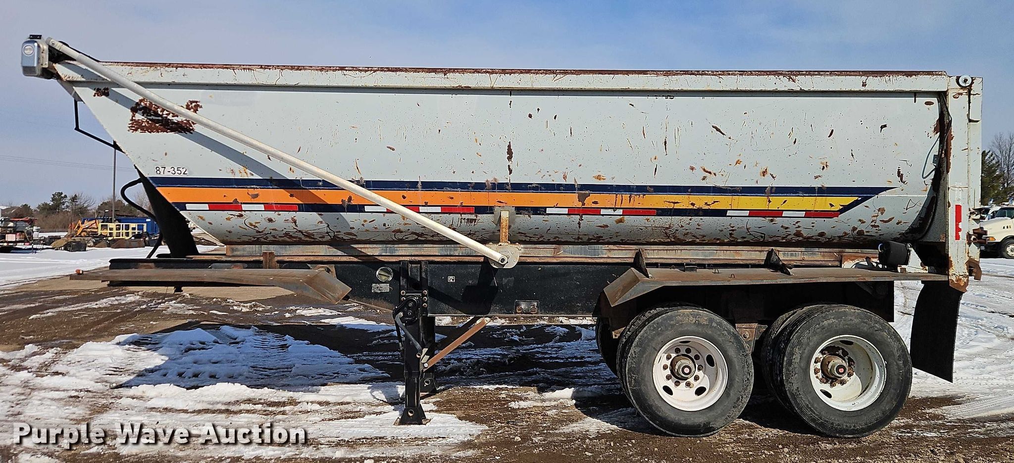 Purple Wave is selling a used End Dump Rock Trailer in Kansas. This item is a 1970 Fruehauf end dump trailer with the following: VIN: FWM628115, Unit #: 87-352