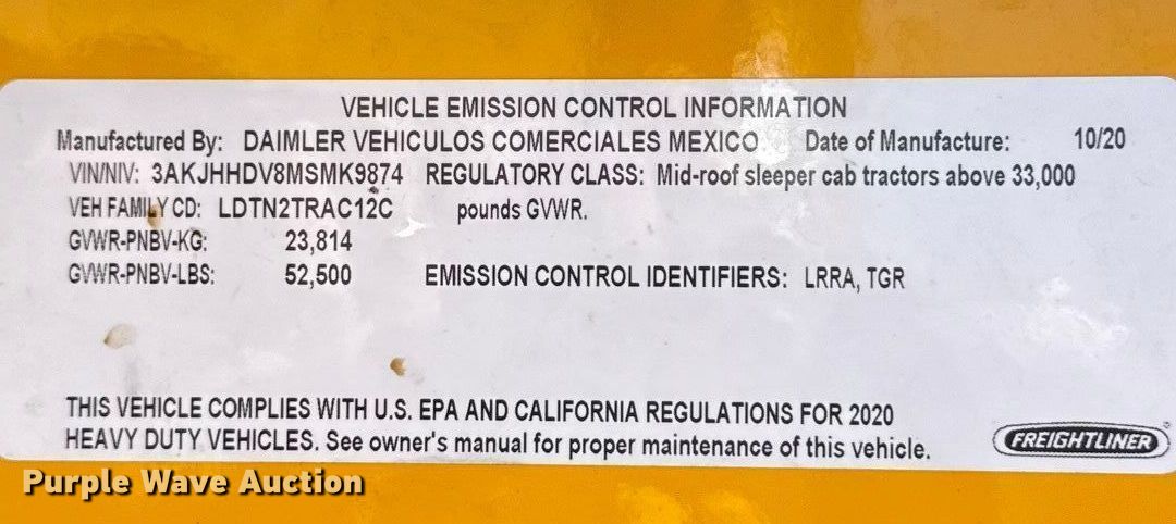 Purple Wave is selling a used Truck Tractor in Oklahoma. This item is a 2021 Freightliner Cascadia 126 semi truck with the following: Miles: 467,264 on odometer, Hours: 22,157 on meter, VIN: 3AKJHHDV8MSMK9874, Unit #: 21135