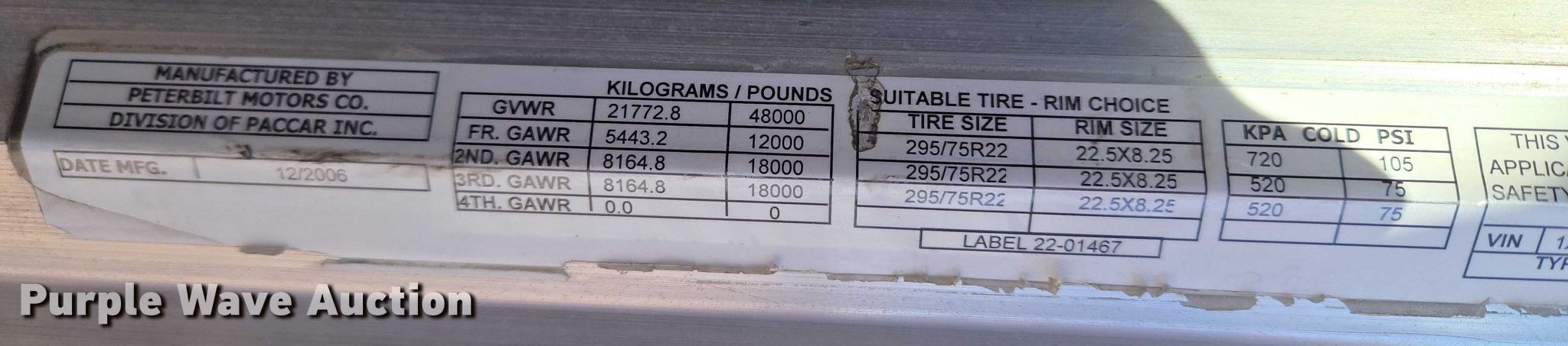 Purple Wave is selling a used Truck Tractor in Texas. This item is a 2007 Peterbilt 379 semi truck with the following: Miles: 223,038 on odometer, Hours: 36,214 on meter, VIN: 1XP5DB9X67D662883