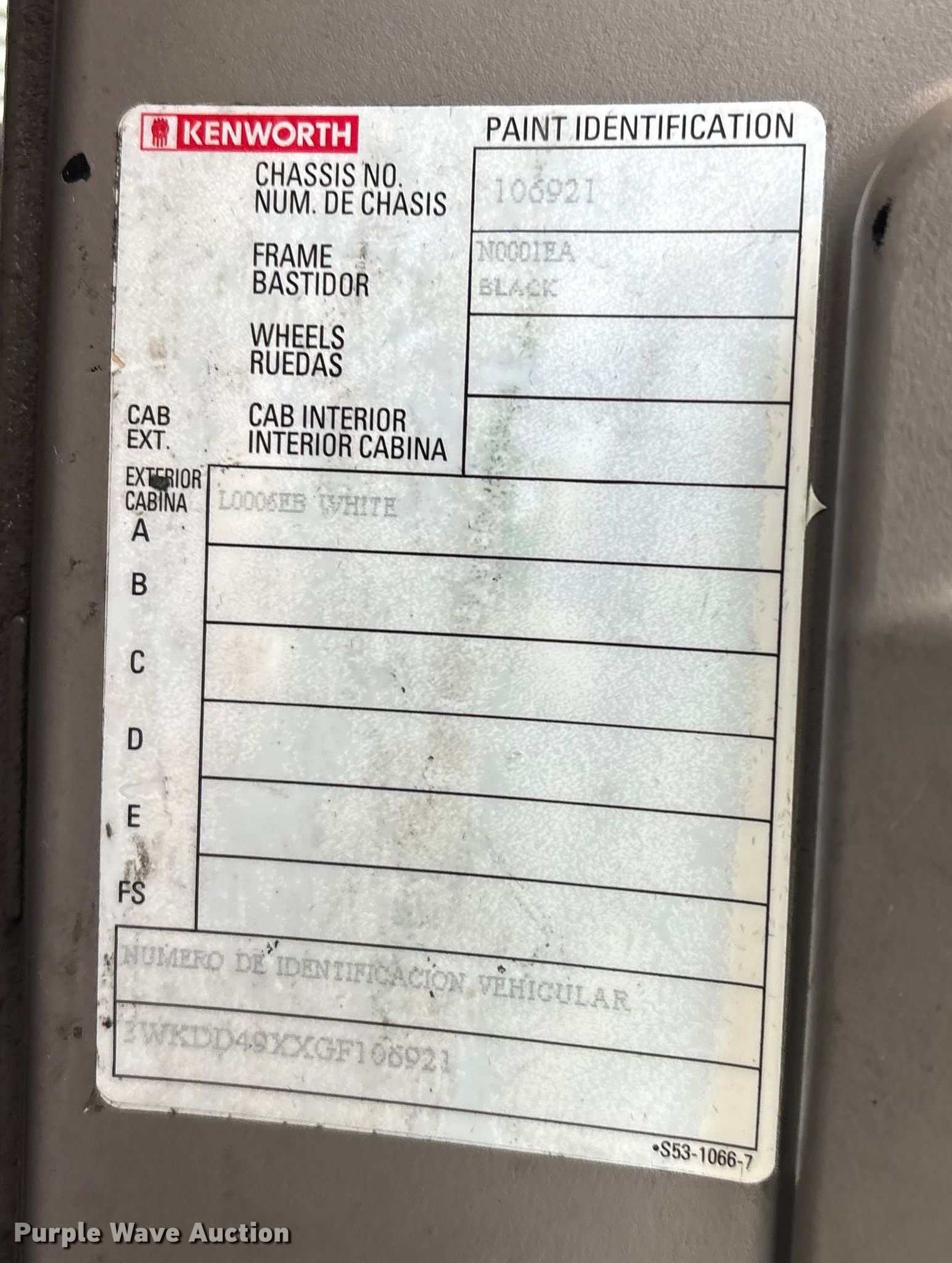 2016 Kenworth T800 semi truck. Miles: 708,398 on odometer, Hours: 20,333 on meter, VIN: 3WKDD49XXGF106921. Engine Cummins ISX15, Serial: 79848037, Displacement: 15L, Cylinders: 6, Fuel type: Diesel, HP: 450, Engine brake. Transmission Eaton Fuller, Manual. Chassis Axles: Tandem, Differential lock: Inter-axle, Suspension: Air, Brakes: Air, Truck chassis: 14". Interior AC, Heat, Heated mirrors, Cruise control. Features Deck plate: Aluminum, Fifth wheel type: Air operated, Sliding, Fuel tank: Dual. Tires Size: 295/75R22.5. Oklahoma title. Title distribution may be delayed up to 14 days from verification of funds. Hiland Dairy. Houston, TX 77013