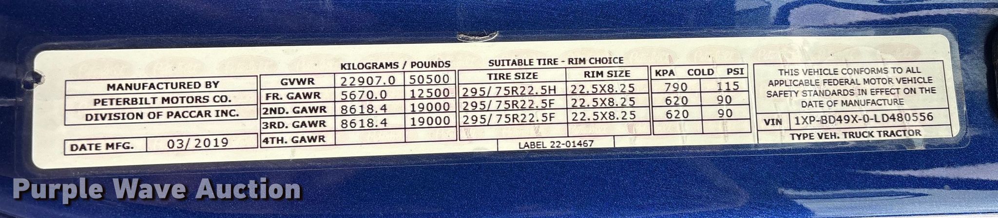 - VIN: 1XPBD49X0LD480556