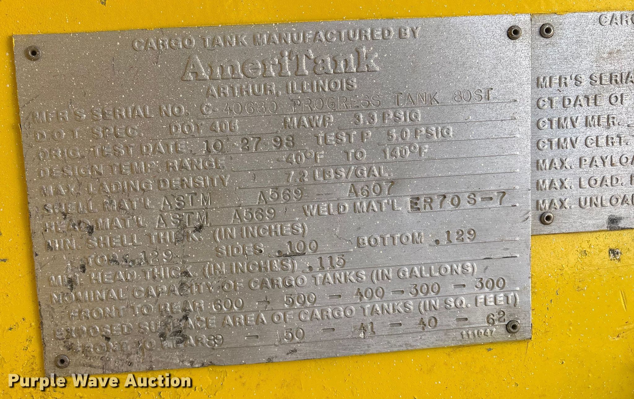 1999 International 4900 fuel truck. Miles: 99,468 on odometer, VIN: 1HTSDAAN9XH638775. Engine International DT466, Displacement: 7.6L, Cylinders: 6, Fuel type: Diesel. Transmission International 6 Plus, Manual, Speed: 6. Chassis Axles: Single, Suspension: Spring, Brakes: Air, PTO, Wheelbase: 188". Interior AC, Heat, Cruise control. Features Bed Tank bed, AmeriTank Progress Tank 80ST, Serial: C-40680, Length: 17' 1", Width: 95", Capacity: 2,100 gallons, Compartments: 5, Hose reels: 2, Nozzles, Metered pumps: 2 Make: Liquid Controls Corp.. Tires Size: 11R22.5. Oklahoma classic title. Title distribution may be delayed up to 14 days from verification of funds. Cimarron Valley Coop Inc.. Perkins, OK 74059