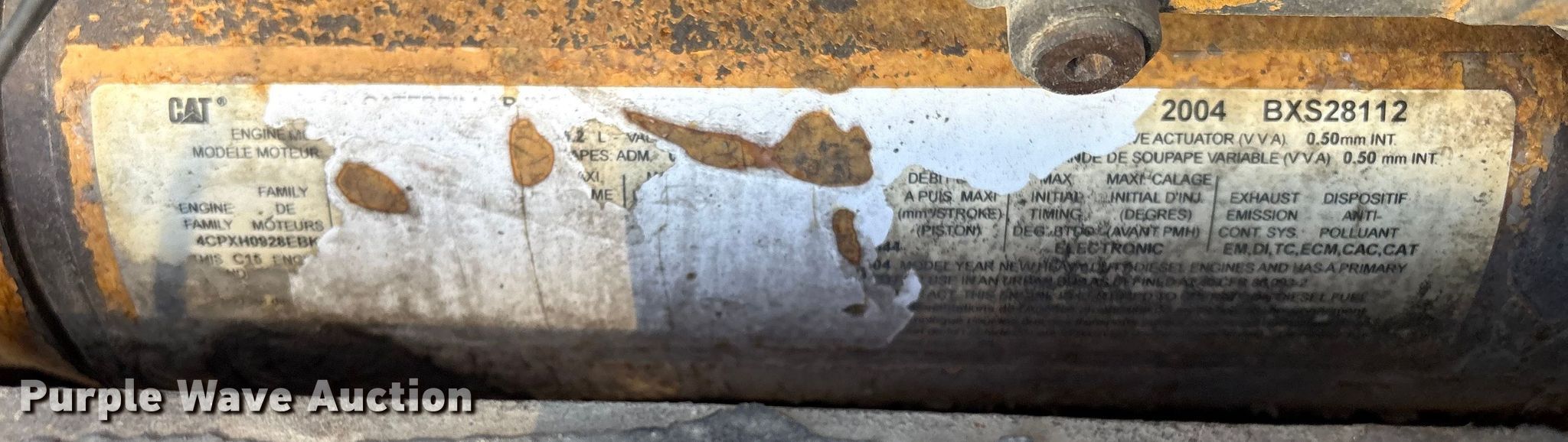2005 Peterbilt 379 semi truck. Miles: 550,868 on odometer, VIN: 1XP5DB9X75N851081. Engine Caterpillar C15, Displacement: 14.6L, Cylinders: 6, Fuel type: Diesel, Engine brake. Transmission Eaton Fuller, Manual, Speed: 9. Chassis Axles: Tandem, Differential lock: Inter-axle, Suspension: Air, Brakes: Air, PTO, Wet kit, Truck chassis: 18' 8", GVWR: 48,000 lbs FAWR: 12,000 lbs, IAWR: 18,000 lbs, RAWR: 18,000 lbs, Wheelbase: 266". Interior AC, Heat, Heated mirrors, Power windows, Power locks, Cruise control, Air ride cab. Features Deck plate: Aluminum, Fifth wheel type: Fixed, Fuel tank: Dual. Tires Size: 11R24.5. Notes Windshield chipped or cracked, Engine turns over, but will not start , Non-operational unit. Iowa title. Title distribution may be delayed up to 14 days from verification of funds. Agriland FS.com. Inola, OK 74036