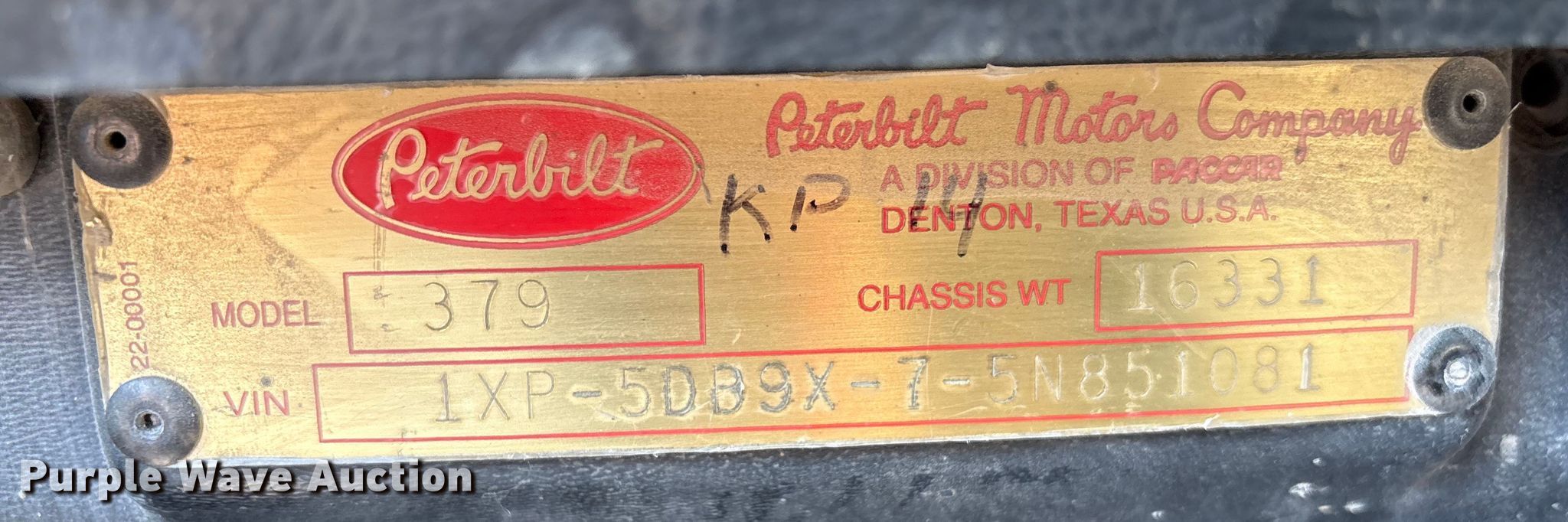 Purple Wave is selling a used Truck Tractor in Oklahoma. This item is a 2005 Peterbilt 379 semi truck with the following: Miles: 550,868 on odometer, VIN: 1XP5DB9X75N851081