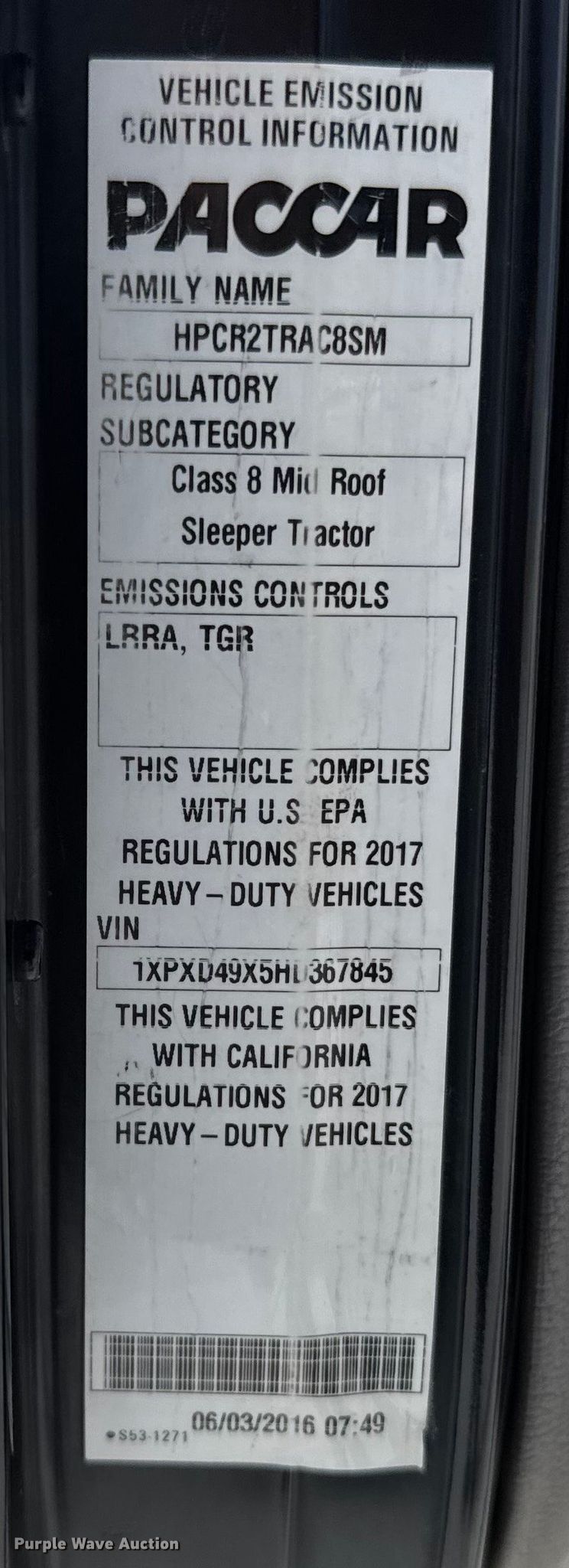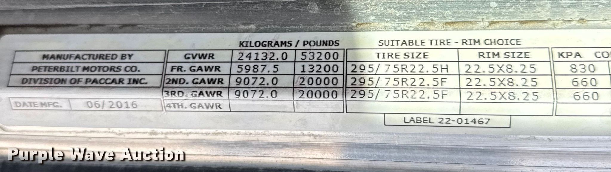 Purple Wave is selling a used Truck Tractor in Kansas. This item is a 2017 Peterbilt 389 semi truck with the following: Miles: 962,658 on odometer, Hours: 22,585 on meter, VIN: 1XPXD49X5HD367845