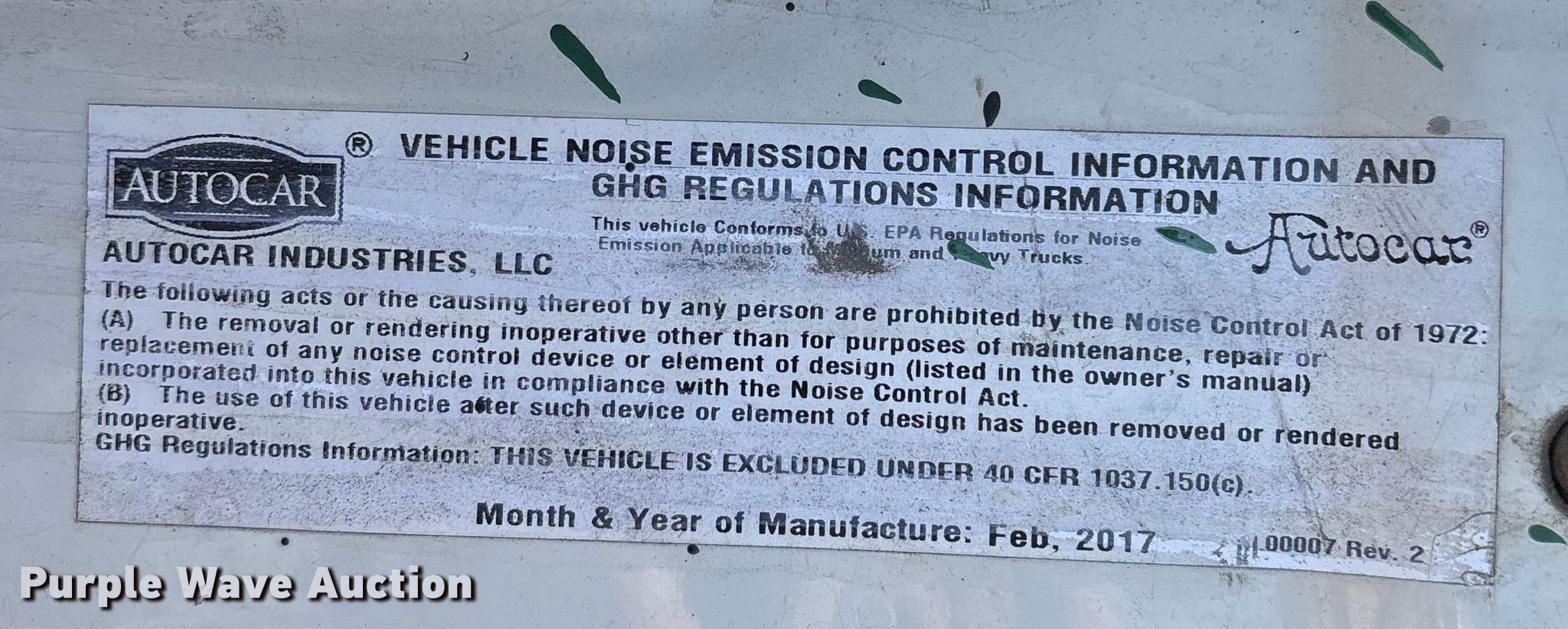 2017 Autocar Xpert truck cab and chassis for sale in Bloomington, California. Item FB5485 will sell on March 5th, 2026.