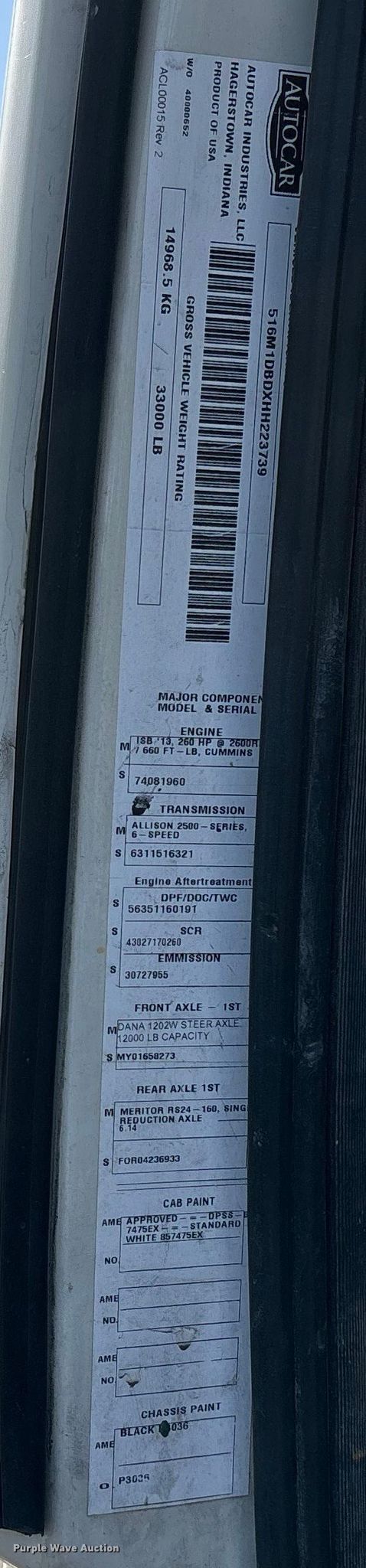 • FB5485 image for item FB5485 2017 Autocar Xpert truck cab and chassis