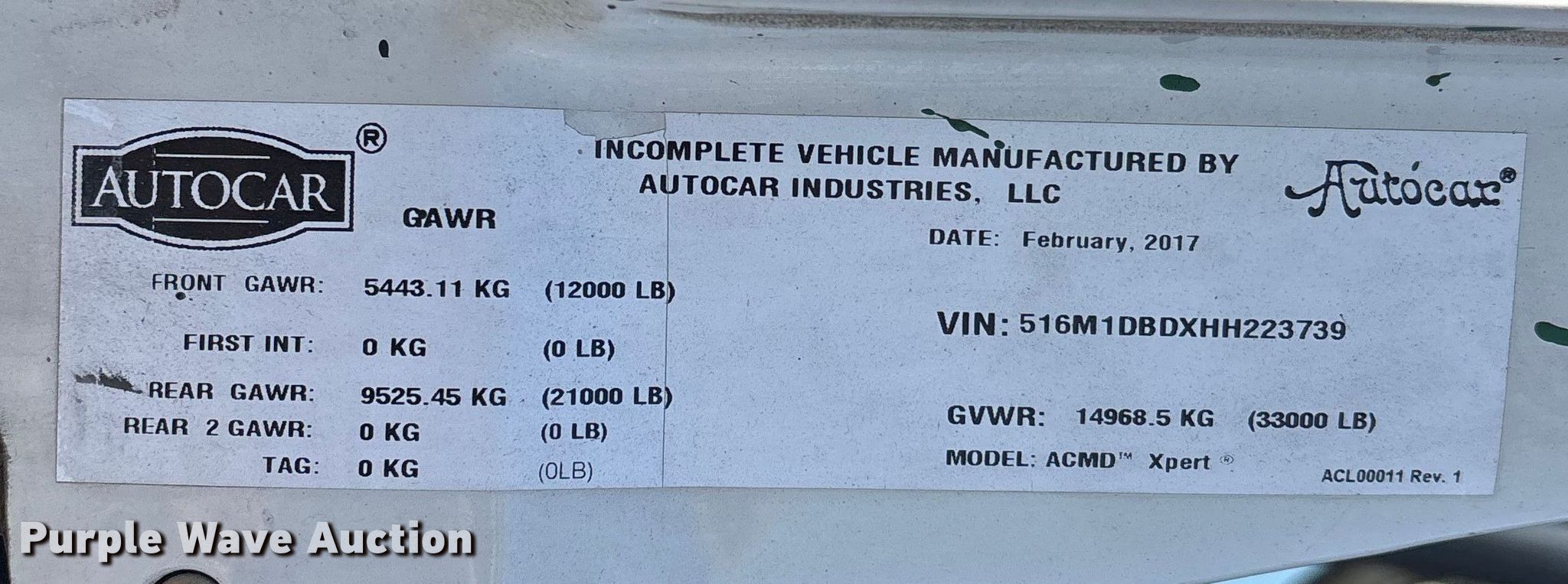 2017 Autocar Xpert truck cab and chassis | Thursday March 05 Truck and Trailer Auction