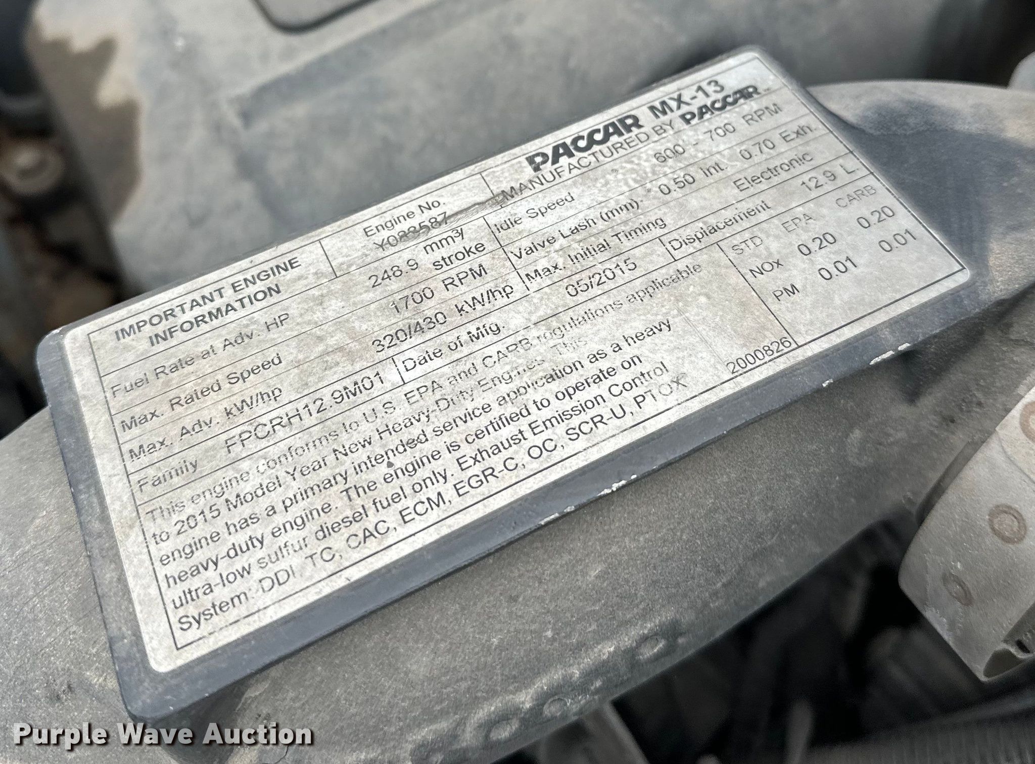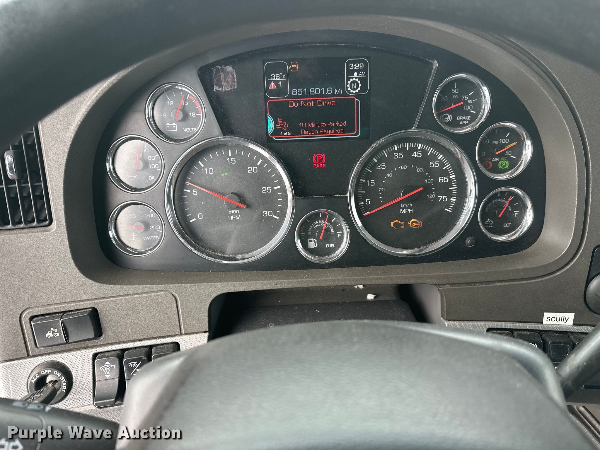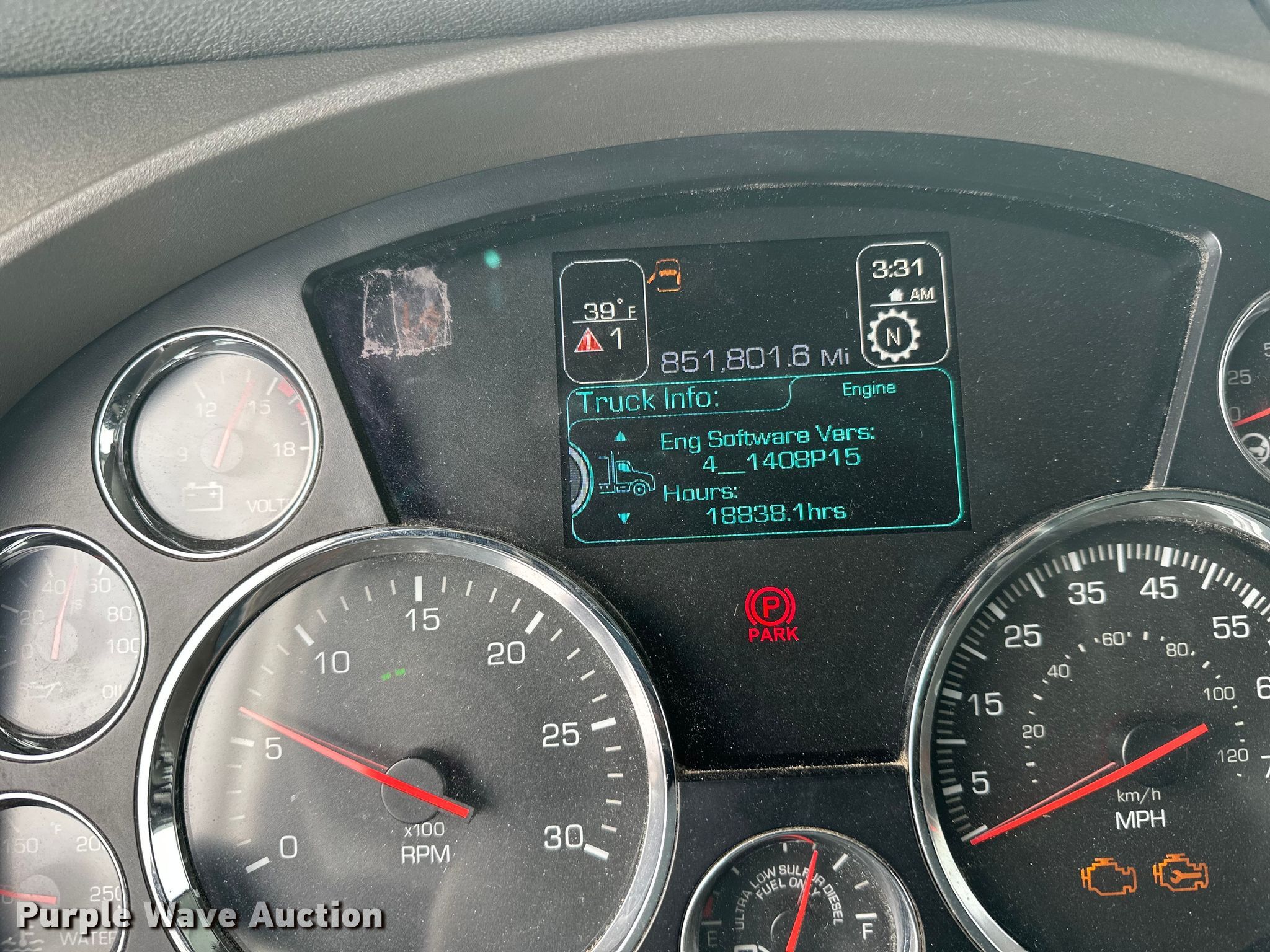 2016 Kenworth T880 semi truck. Miles: 851,802 on odometer, Hours: 18,838 on meter, VIN: 1XKZDP8X5GJ114932. Engine Paccar MX-13, Displacement: 12.9L, Cylinders: 6, Fuel type: Diesel, Engine brake. Transmission Eaton Fuller, Automatic. Chassis Axles: Tandem, Differential lock: Inter-axle, Suspension: Air Dump valves, Brakes: Air, GVWR: 46,000 lbs. Interior AC, Heat, Heated mirrors, Power windows, Power locks, Cruise control, Air ride cab, Sleeper Sleeper length: 44", Beds: Single, Rear climate control. Features Deck plate: Aluminum, Fifth wheel type: Air operated, Sliding, Fuel tank: Single. Tires Front: 11R22.5, Rear: 445/65R22.5. Notes Dash warning indicator: Check engine, Regen warning. Minnesota title. Title distribution may be delayed up to 30 days from verification of funds. CHS, Inc.. Rosemount, MN 55068