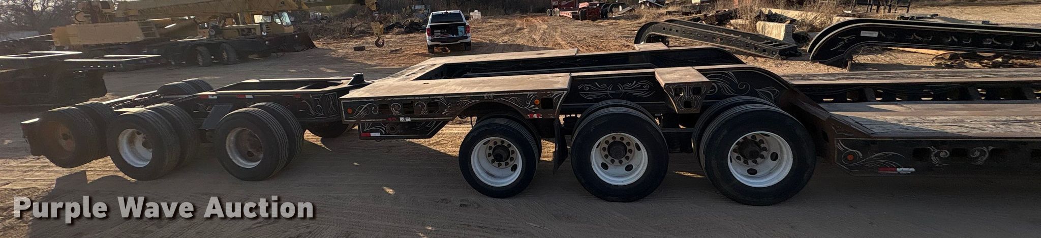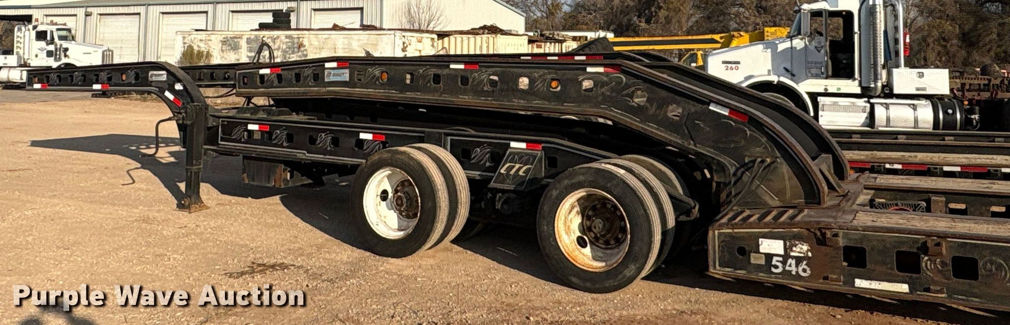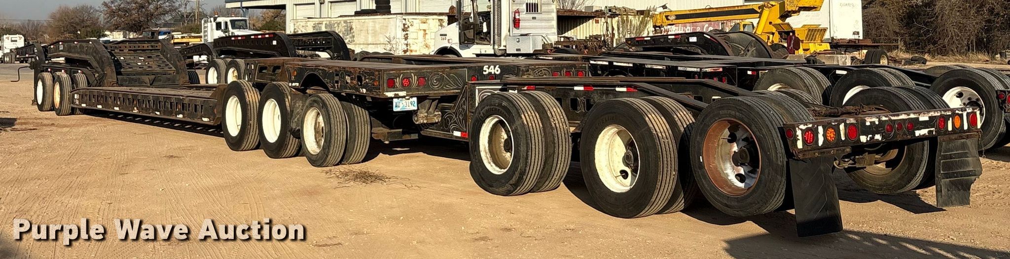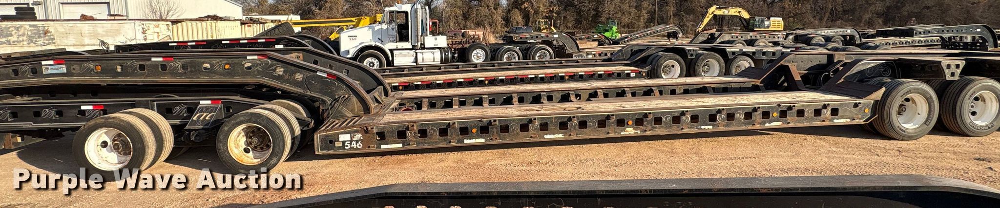1990 Siebert lowboy equipment trailer. VIN: 1S9TK5032L1111170, Unit #: 546. Dimensions Overall Length: 95' 5", Width: 10', Deck Length: 26', Width: 10', Deck height: 29" Length: 17'. Features Deck type: Wood, Neck type: Detachable, Self-contained hydraulics. Chassis Landing gear: Dual, Suspension: Air, Walking beam, Brakes: Air, Axles: Triple. Tires Steel wheels, Size: 255/70R22.5. Notes Non-operational pony motor. Siebert jeep axle VIN: 1S9JD2524L1111171. Dimensions Overall Length: 353", Width: 122". Chassis Landing gear: Dual, Suspension: Air, Walking beam, Brakes: Air, Axles: Tandem. Siebert stinger axle. Chassis Suspension: Air, Walking beam, Brakes: Air, Axles: Tandem. Tires Size: 255/70R22..5. Trailer - Oklahoma title. Jeep - transfer of ownership documentation will be a bill of sale. Stinger - transfer of ownership documentation will be a bill of sale.. Title distribution may be delayed up to 30 days from verification of funds. CTC Transportation. 3540 Euless South Main Street. Euless, TX 76040