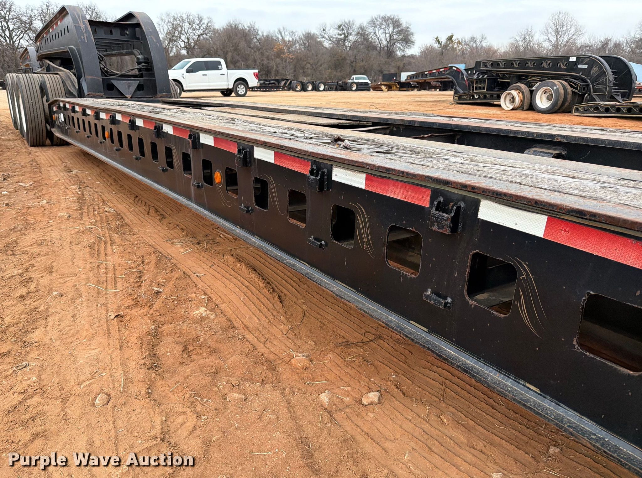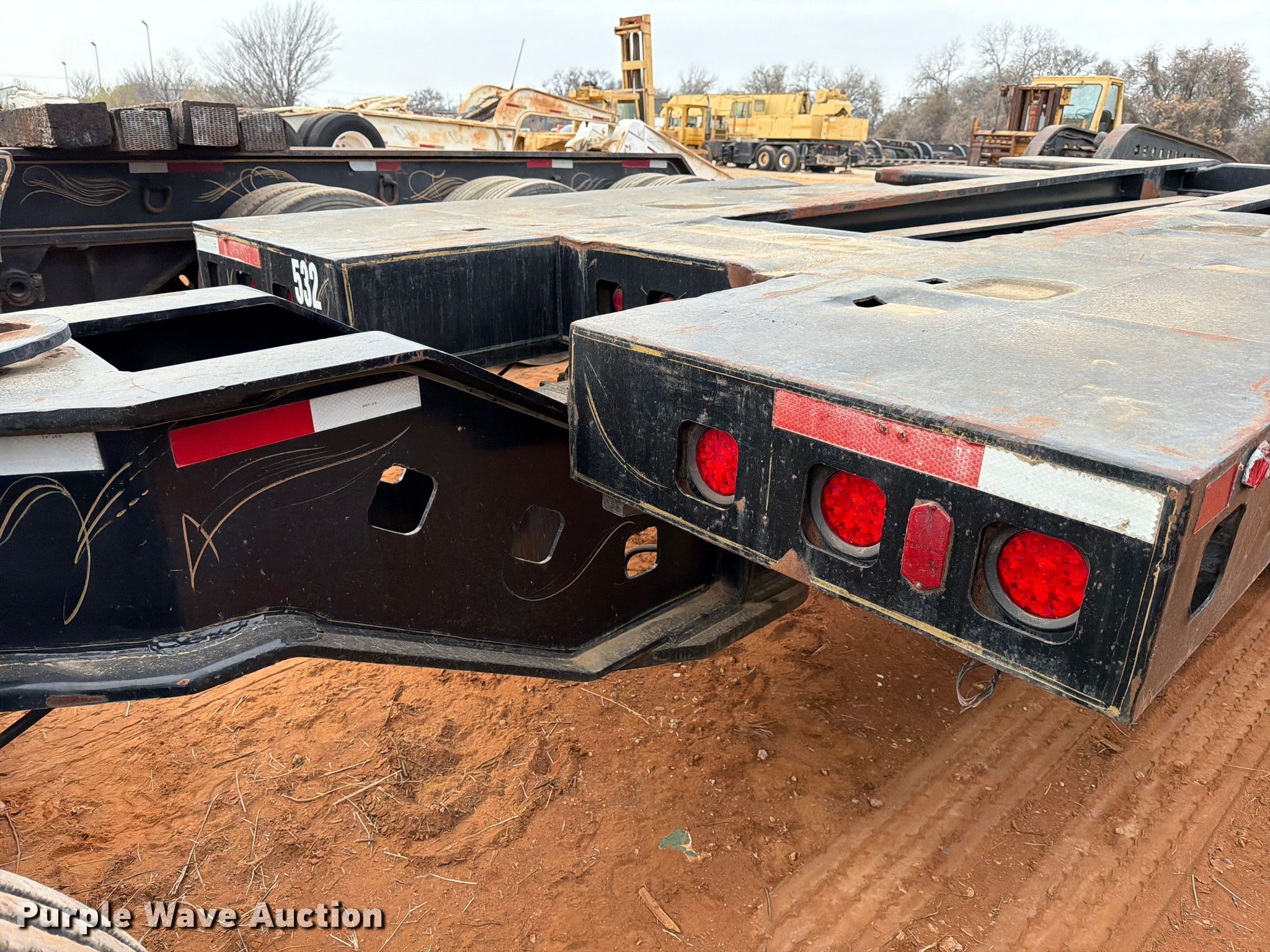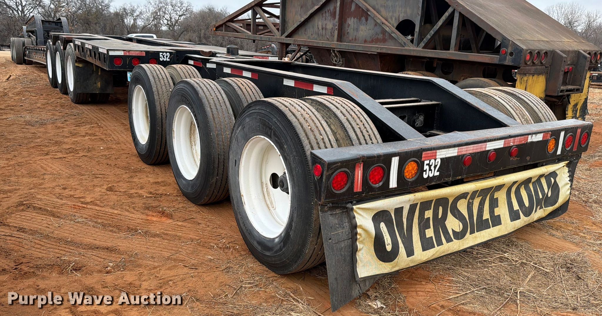 1988 Siebert lowboy equipment trailer. VIN: 1S9TN503XJ1111101, Unit #: 532. Dimensions Overall Length: 95' 9", Width: 102", Deck Length: 28' 5", Width: 80", Rear deck length: 22', Deck height: 33". Features Deck type: Steel, Wood, Neck type: Detachable, Self-contained hydraulics, Hydraulic controls: Manual. Chassis Suspension: Walking beam, Brakes: Air, Axles: Triple Detachable tag. Tires Steel wheels, Size: 11R24.5. Notes Non-operational self contained hydraulics. Jeep axle Chassis Landing gear: Dual, Suspension: Spring, Brakes: Air, Axles: Triple. Tires Size: 11R24.5. Stinger axle Chassis Brakes: Air, Axles: Triple. Tires Size: 11R24.5. Trailer: Oklahoma title. Jeep: Transfer of ownership documentation will be a bill of sale. Stinger axle: Transfer of ownership documentation will be a bill of sale.. Title distribution may be delayed up to 30 days from verification of funds. CTC Transportation. 3540 Euless South Main Street. Euless, TX 76040