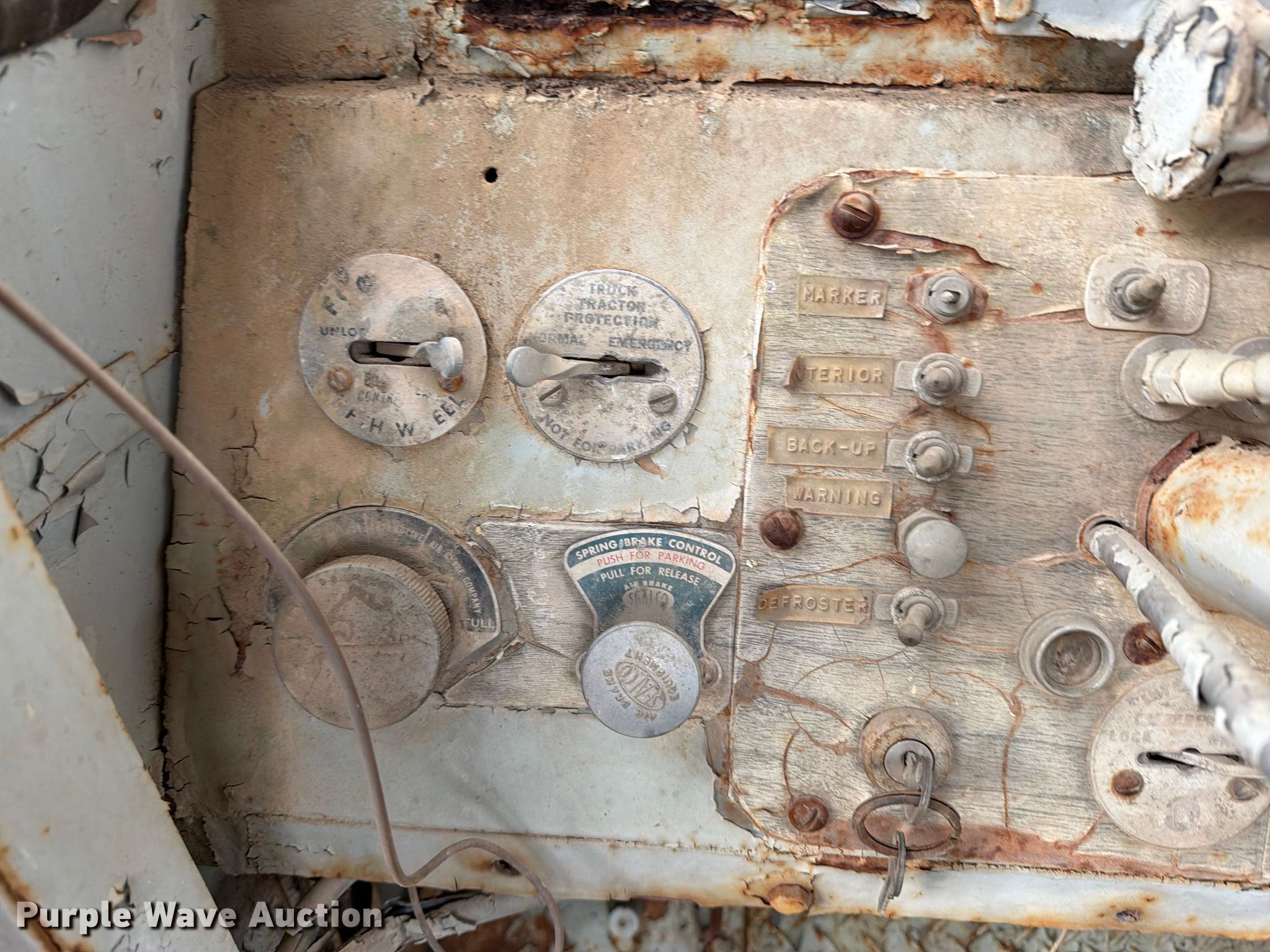 Yard truck. Miles: Unknown. Engine Cylinders: 12, Fuel type: Diesel. Chassis Axles: Tandem, Differential lock: Inter-axle, Suspension: Spring over walking beam, Brakes: Air, PTO. Interior Heat. Features Fifth wheel type: Sliding. Tires Size: 14.00R24. Notes Tires flat, Tires damaged, Batteries missing, Door issues, do not latch, Passenger door window cracked, Unknown operating condition. This is worksite support equipment and will not come with a title. Transfer of ownership documentation will be a bill of sale. CTC Transportation. Euless, TX 76040