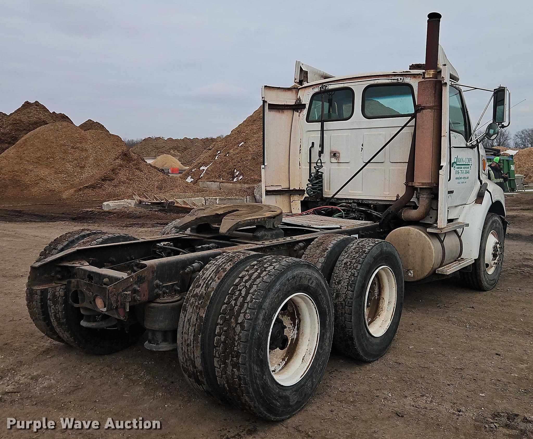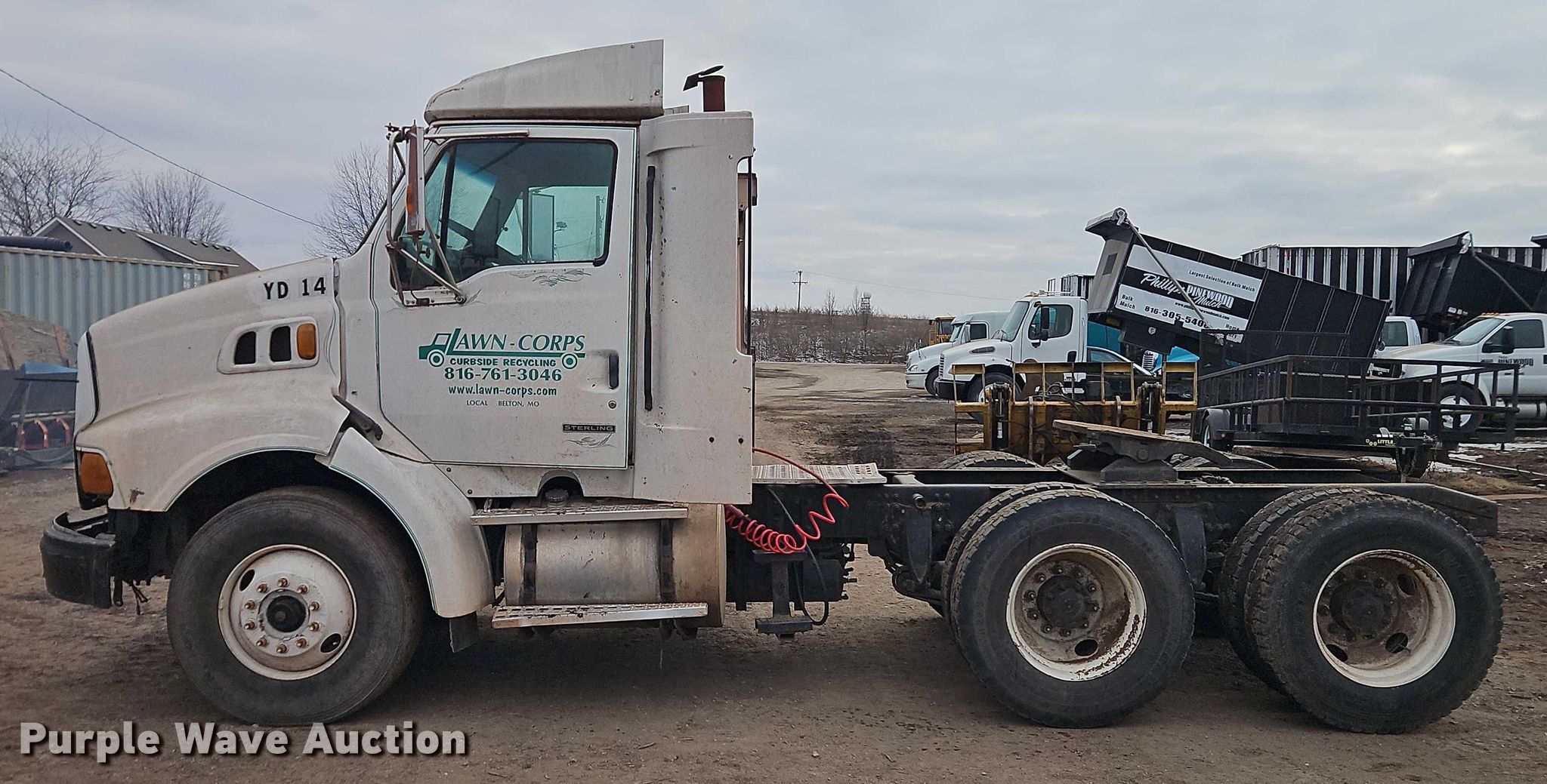 1999 Sterling A-Line semi truck. Miles: 816,080 on odometer, VIN: 2FWYHCXBXXAB61400. Engine Detroit Diesel, Cylinders: 6, Fuel type: Diesel. Transmission Eaton Fuller, Manual. Chassis Axles: Tandem, Differential lock: Inter-axle, Suspension: Air, Brakes: Air, GVWR: 52,000 lbs FAWR: 12,000 lbs, IAWR: 20,000 lbs, RAWR: 20,000 lbs. Interior AC, Heat, Power windows, Power locks, Air ride cab. Features Deck plate: Aluminum, Fifth wheel type: Fixed, Fuel tank: Dual. Tires Front: 315/80R22.5, Rear: 11R22.5. Notes Door latch issues, do not close, Non-operational AC, AC belt missing, Windshield chipped or cracked, Engine issues, blow by , Engine issues, smokes. Missouri title. Title distribution may be delayed up to 14 days from verification of funds. St. Louis Composting DBA Kansas City Composting. Belton, MO 64012