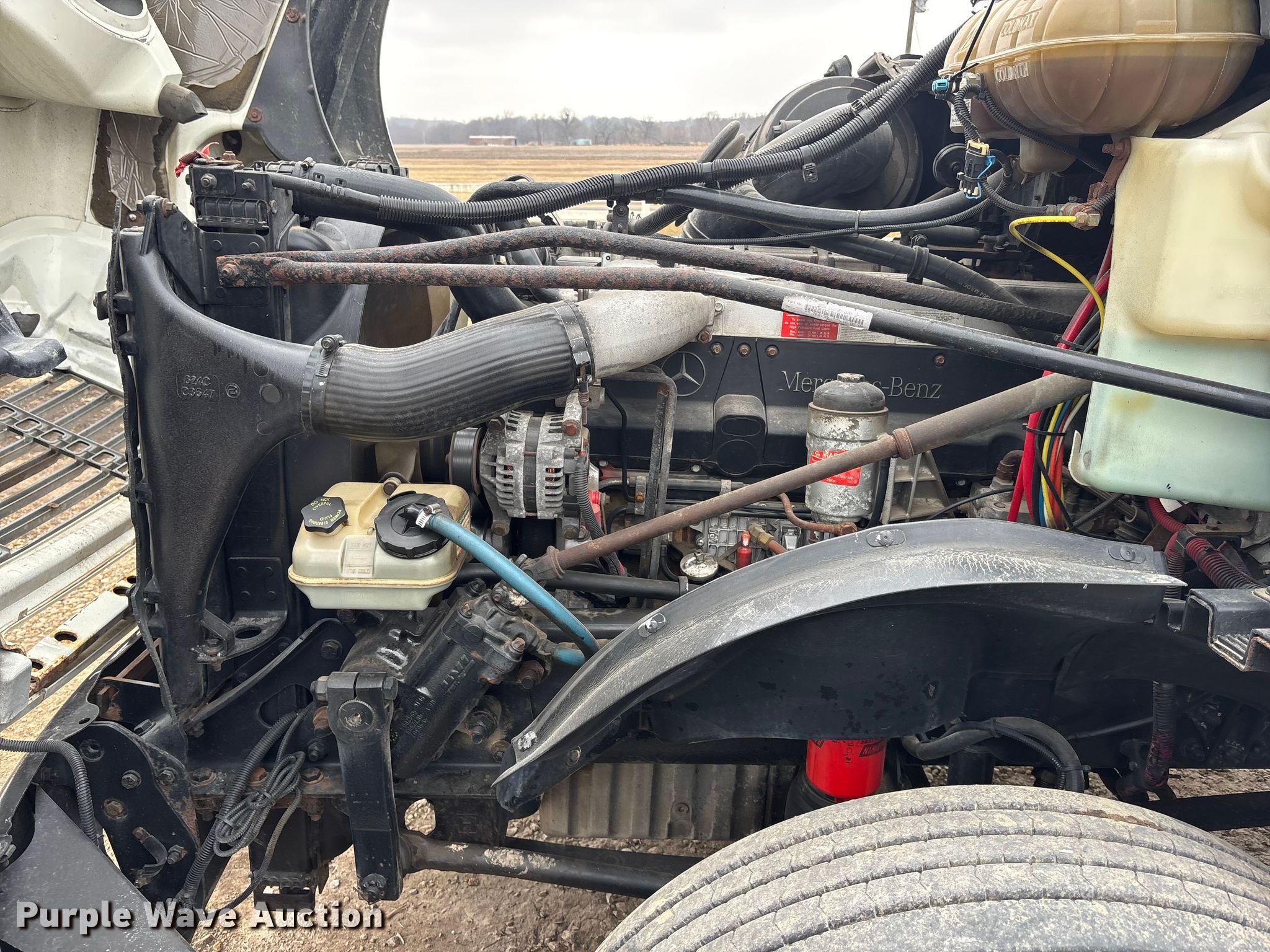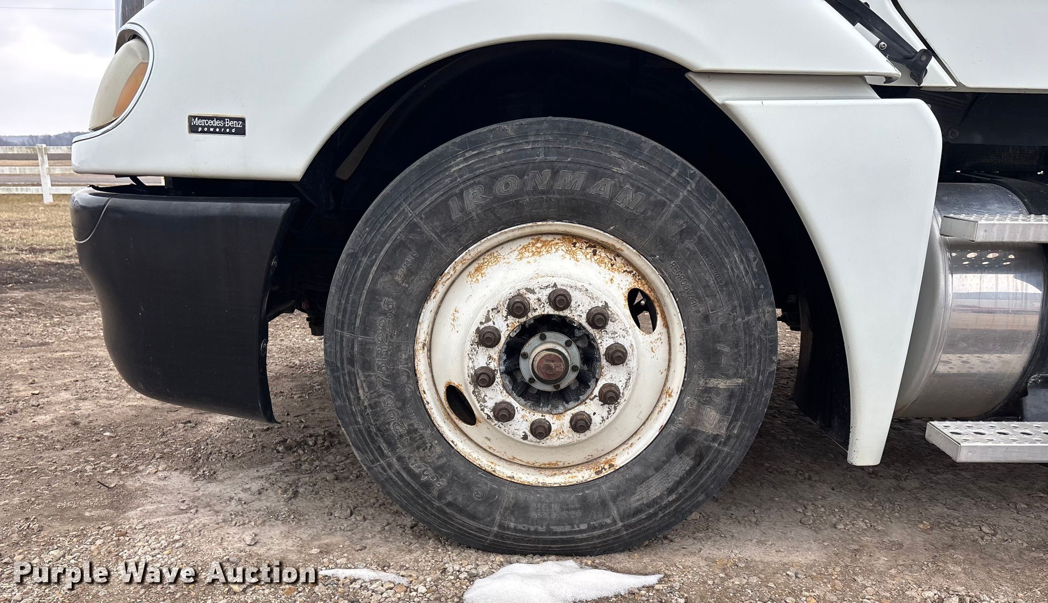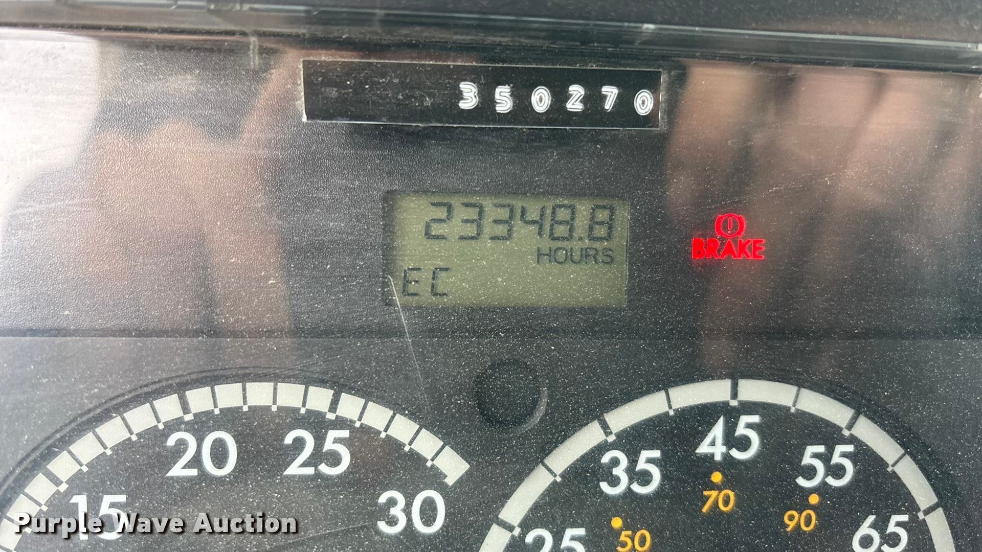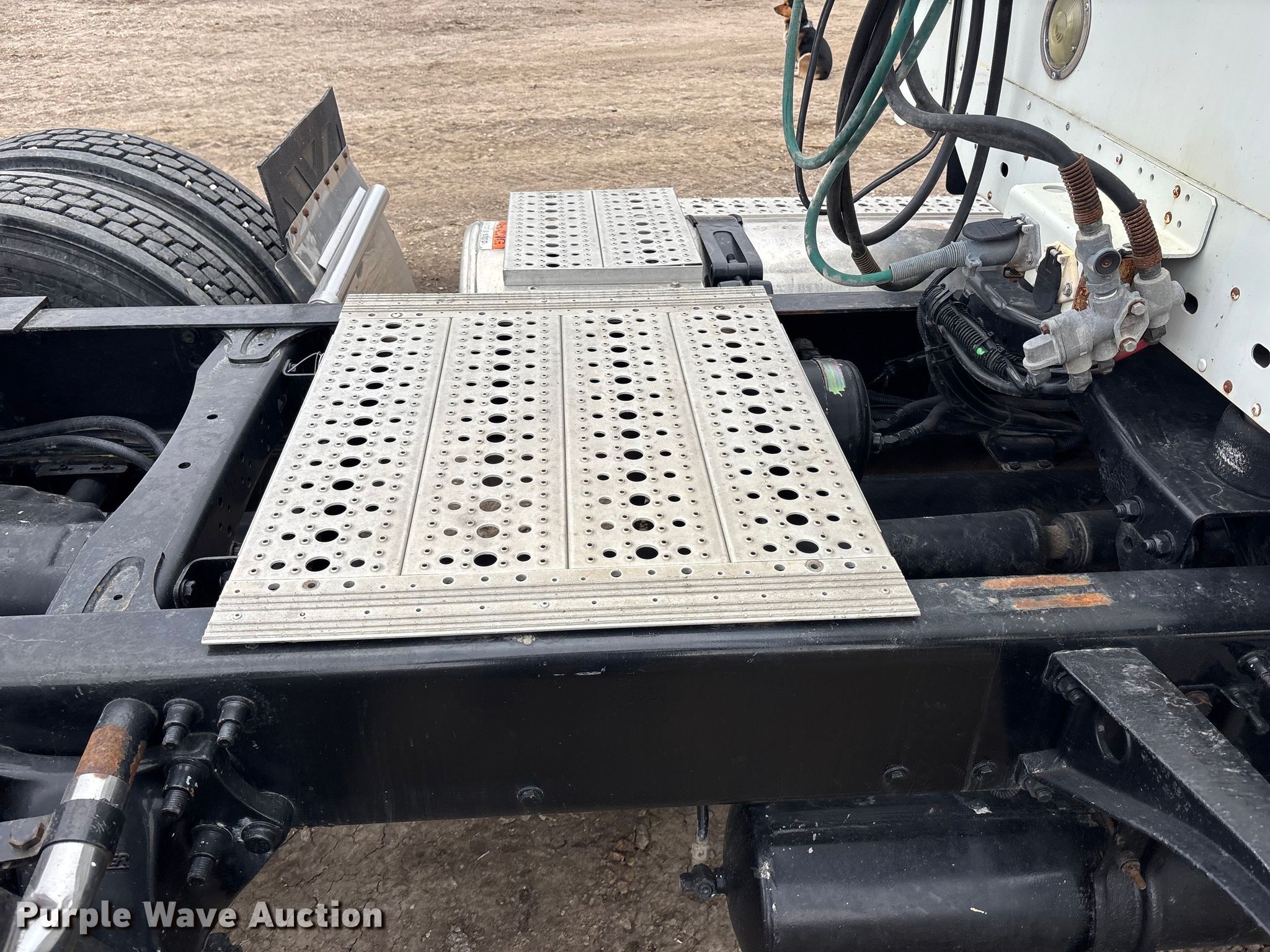 2005 Freightliner Columbia semi truck. Miles: 352,321 on odometer, Hours: 23,349 on meter, VIN: 1FUJA6CV45LV11415. Engine Mercedes-Benz MBE4000, Displacement: 12.8L, Cylinders: 6, Fuel type: Diesel, Engine brake. Transmission Automatic. Chassis Axles: Tandem, Differential lock: Inter-axle, Suspension: Air, Brakes: Air. Interior AC, Heat, Heated mirrors, Cruise control, Air ride cab. Features Deck plate: Aluminum, Fifth wheel type: Fixed, Fuel tank: Single. Tires Size: 295/75R22.5. Notes Dash warning indicator: Brake, Windshield chipped or cracked. Kansas title. Title distribution may be delayed up to 14 days from verification of funds. McKiddy Ag Services. Easton, KS 66020