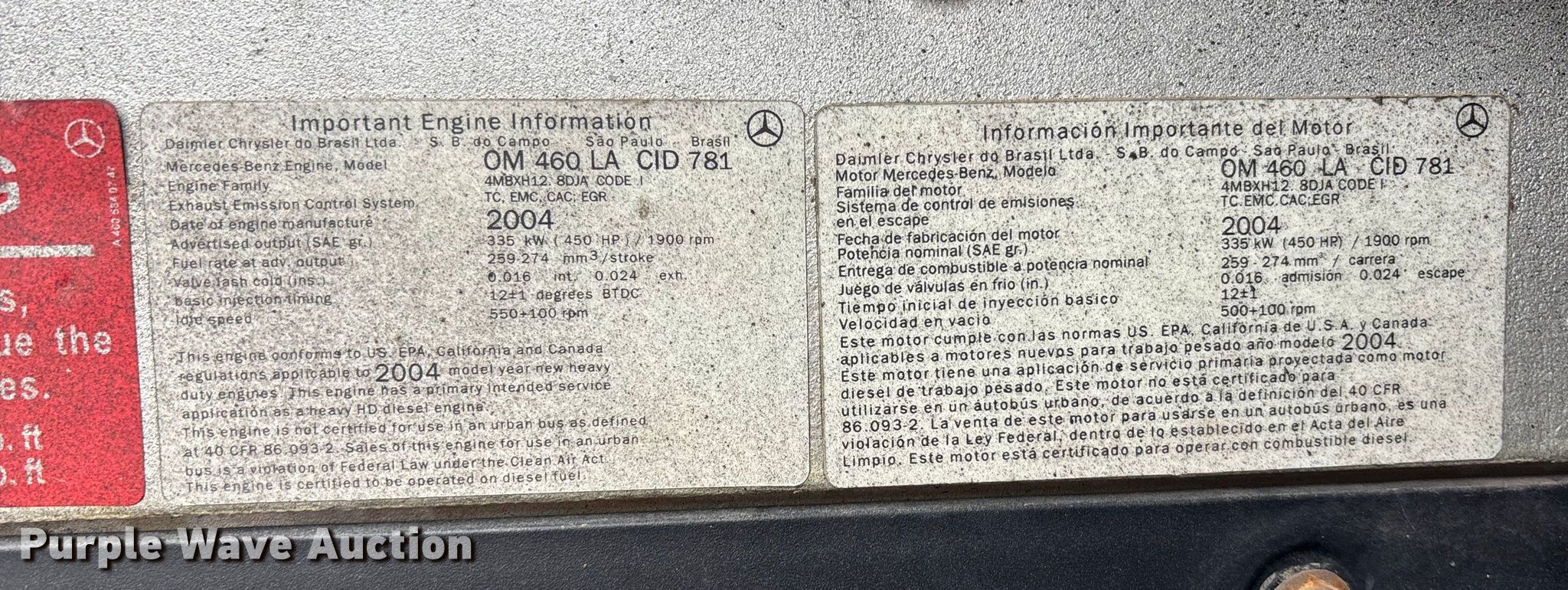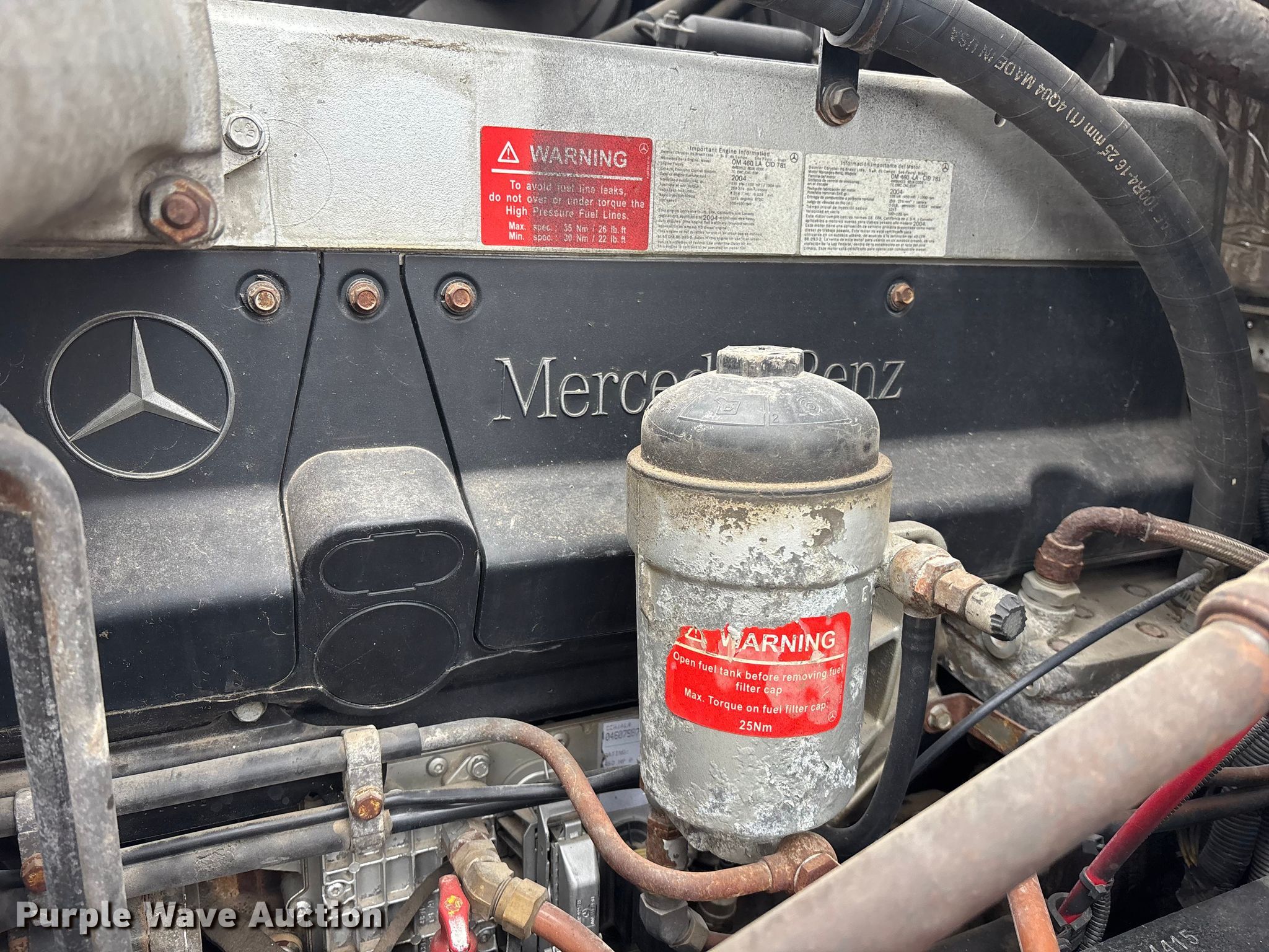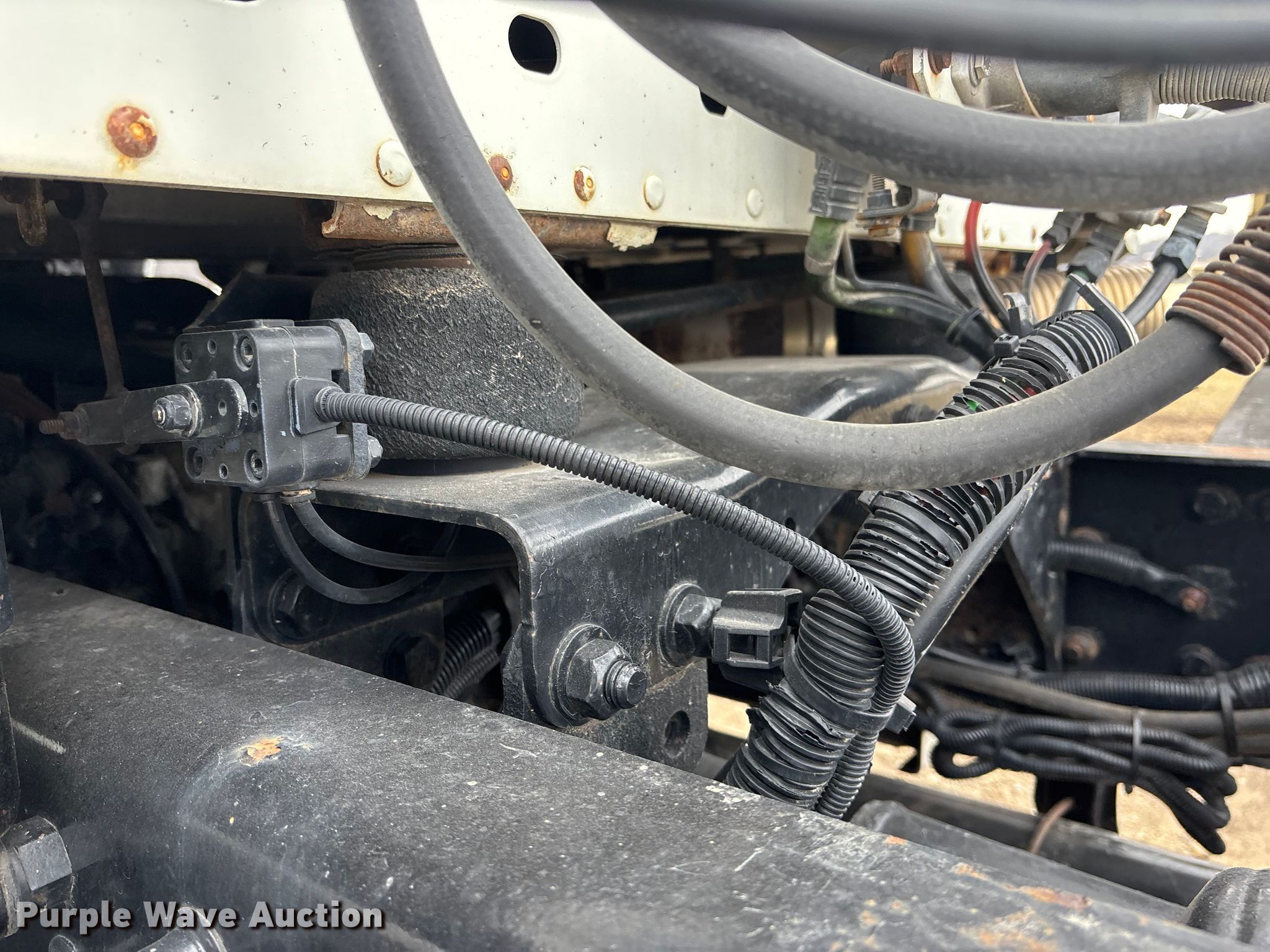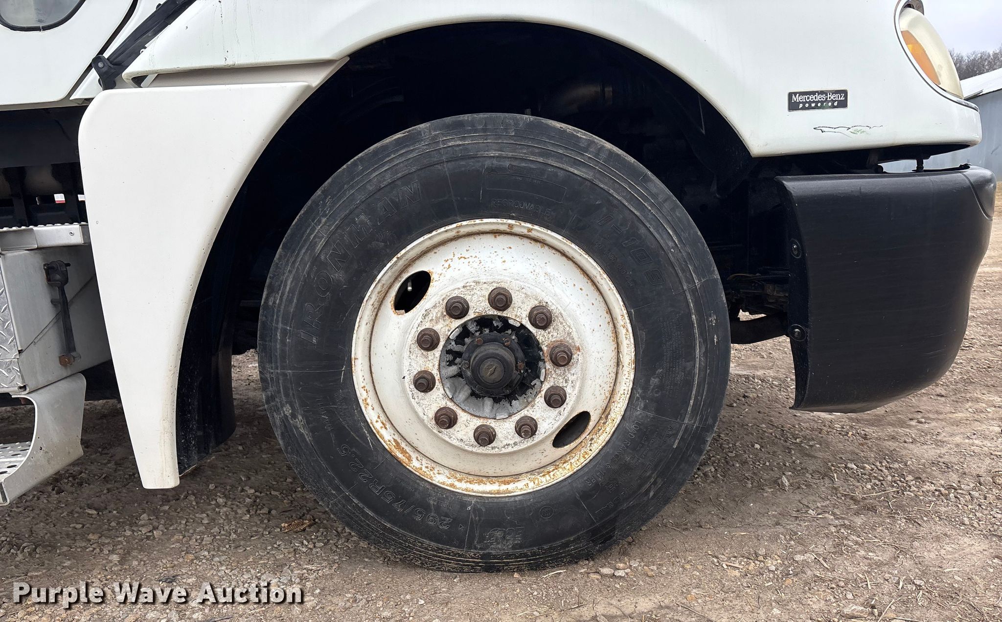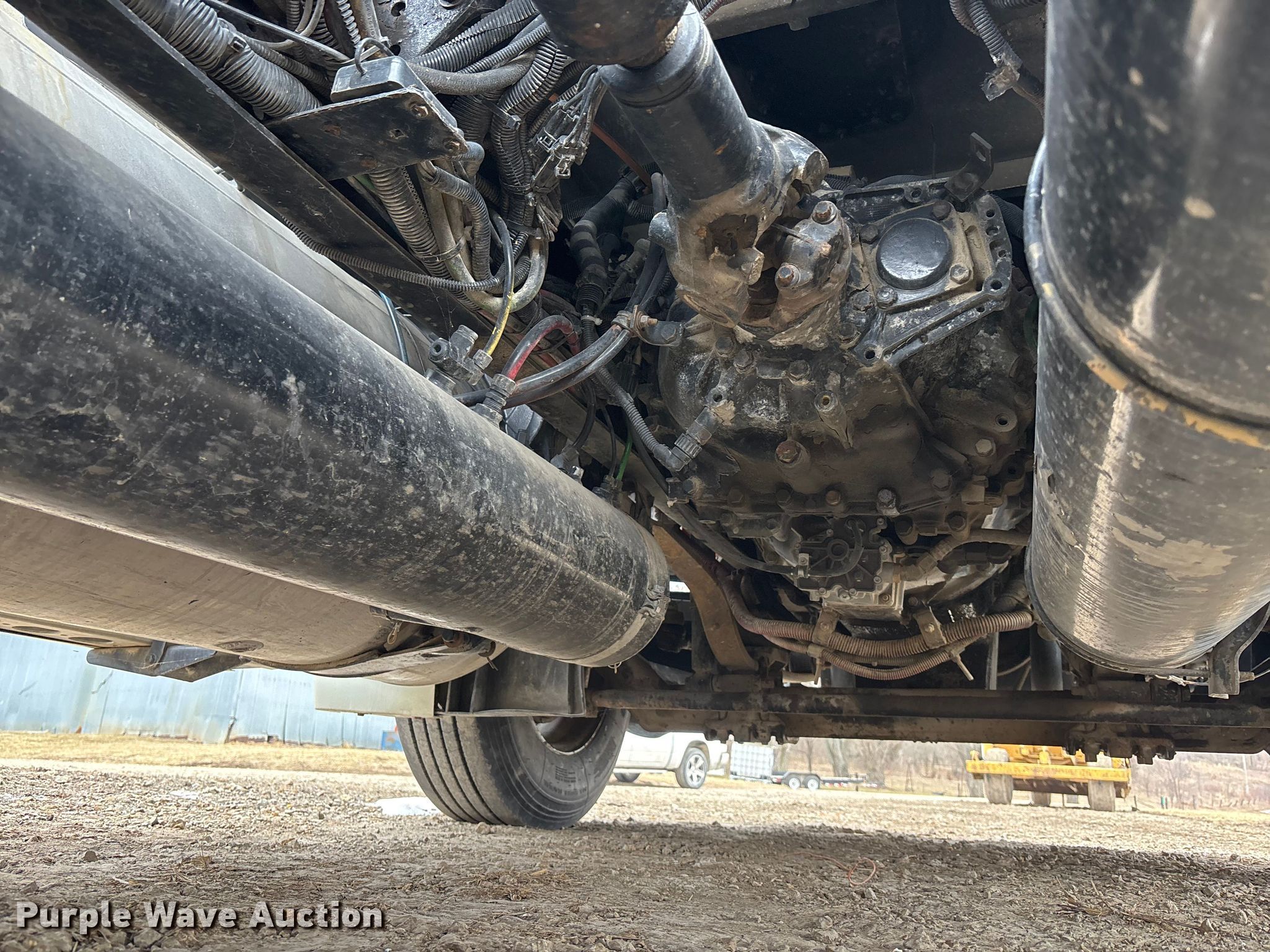 2005 Freightliner Columbia semi truck. Miles: 352,321 on odometer, Hours: 23,349 on meter, VIN: 1FUJA6CV45LV11415. Engine Mercedes-Benz MBE4000, Displacement: 12.8L, Cylinders: 6, Fuel type: Diesel, Engine brake. Transmission Automatic. Chassis Axles: Tandem, Differential lock: Inter-axle, Suspension: Air, Brakes: Air. Interior AC, Heat, Heated mirrors, Cruise control, Air ride cab. Features Deck plate: Aluminum, Fifth wheel type: Fixed, Fuel tank: Single. Tires Size: 295/75R22.5. Notes Dash warning indicator: Brake, Windshield chipped or cracked. Kansas title. Title distribution may be delayed up to 14 days from verification of funds. McKiddy Ag Services. Easton, KS 66020
