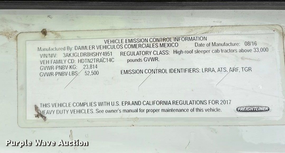 - VIN: 3AKJGLDR8HSHY4951