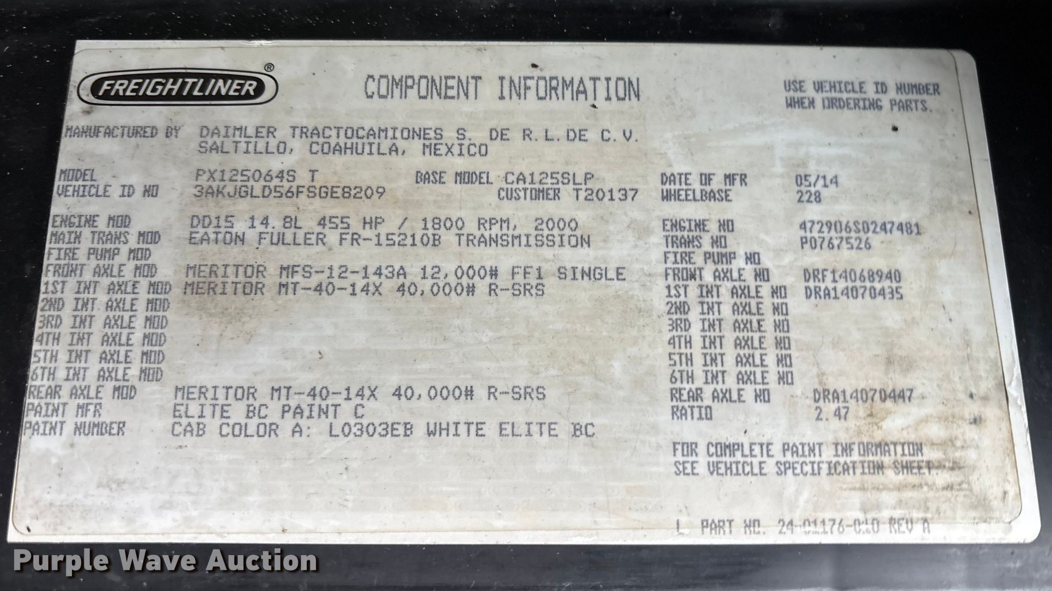 - VIN: 3AKJGLD56FSGE8209