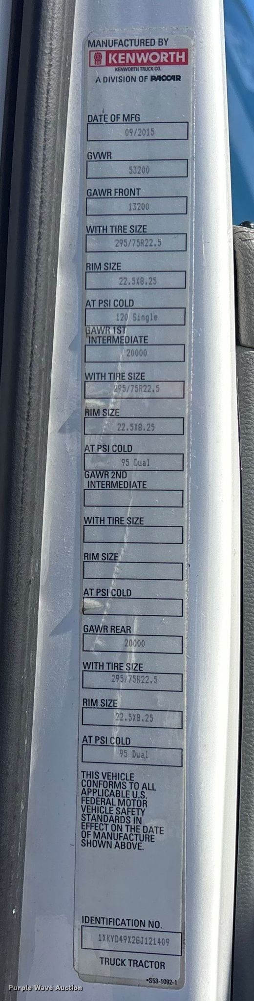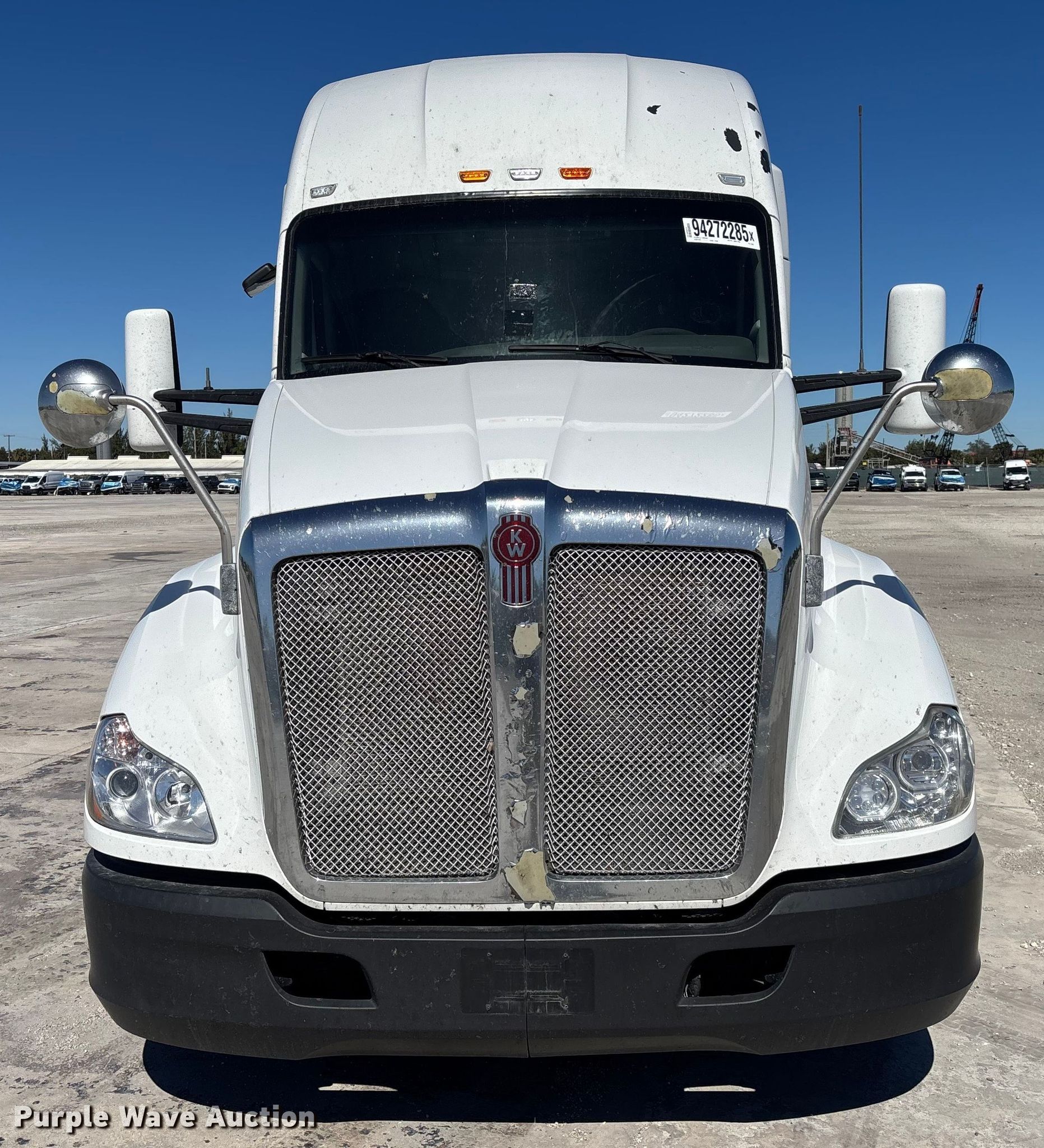2016 Kenworth T680 semi truck. Miles: 1,062,269 on odometer, Hours: 25,654 on meter, VIN: 1XKYD49X2GJ121409, Unit #: 94272285. Engine Cummins ISX15 450ST2, Displacement: 15.0L, Cylinders: 6, Fuel type: Diesel, HP: 450, Engine brake. Transmission Eaton Fuller, Automatic. Chassis Axles: Tandem, Gear ratio: 2.64, Differential lock: Inter-axle, Suspension: Air Dump valves, Brakes: Air, GVWR: 53,200 lbs FAWR: 13,200 lbs, IAWR: 20,000 lbs, RAWR: 20,000 lbs. Interior AC, Heat, Heated mirrors, Power windows, Power locks, Cruise control, Air ride cab, Sleeper Sleeper length: 72", Beds: Double bunk, Rear climate control, Auxiliary power unit Thermo King Tri Pac Evolution, Engine Yanmar.. Features Deck plate: Aluminum, Fifth wheel type: Air operated, Sliding, Fuel tank: Dual. Tires Size: 295/75R22.5. Notes Windshield chipped or cracked, Jump start required during on-site data collection. Repossessed item, stored at a secured facility. Please review REQUIRED REMOVAL INSTRUCTIONS. Titles will be distributed after confirmation of payment and removal. Florida title. Title distribution may be delayed up to 30 days from verification of funds. Lender Owned. 7876 Belvedere Road. West Palm Beach, FL 33411