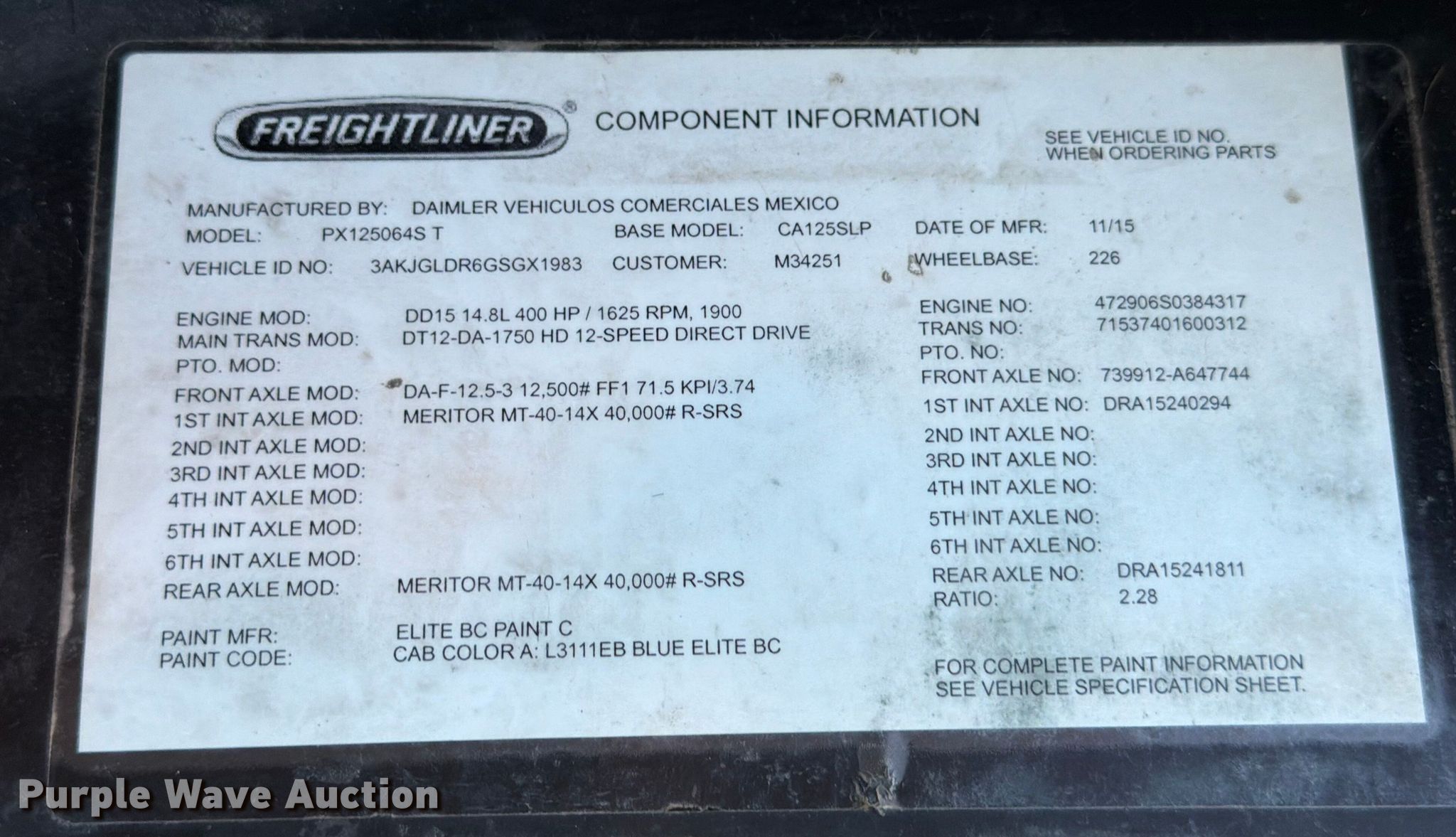 Take a look at this used 2016 Freightliner Cascadia semi truck being sold on March 5th, 2026 in the Thursday March 05 Truck and Trailer Auction made by Freightliner. Take a look at all of the item information below or take a look at similar auctions for Trucks.