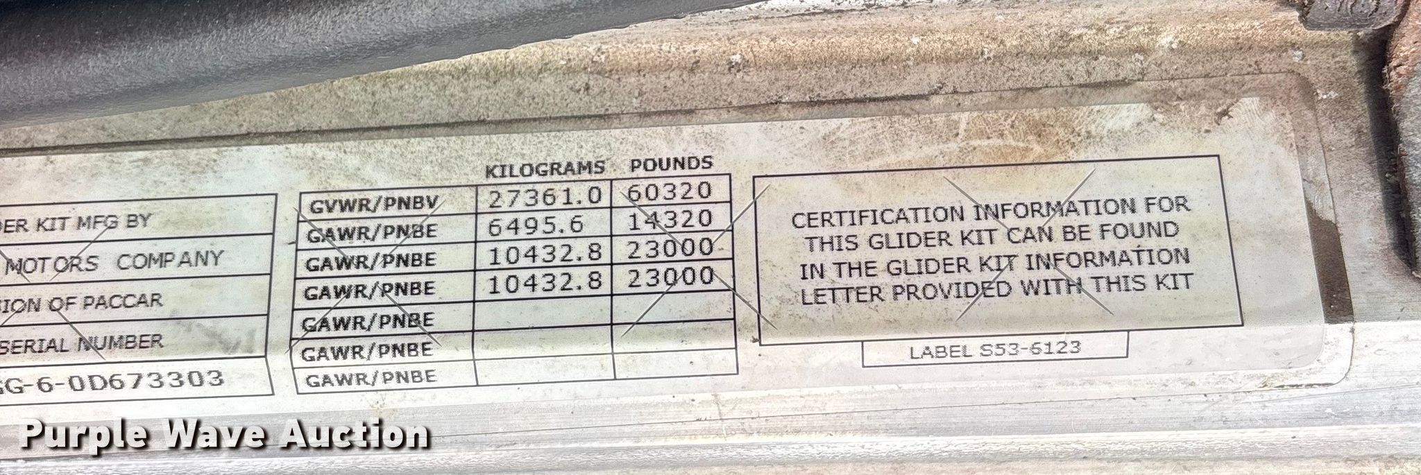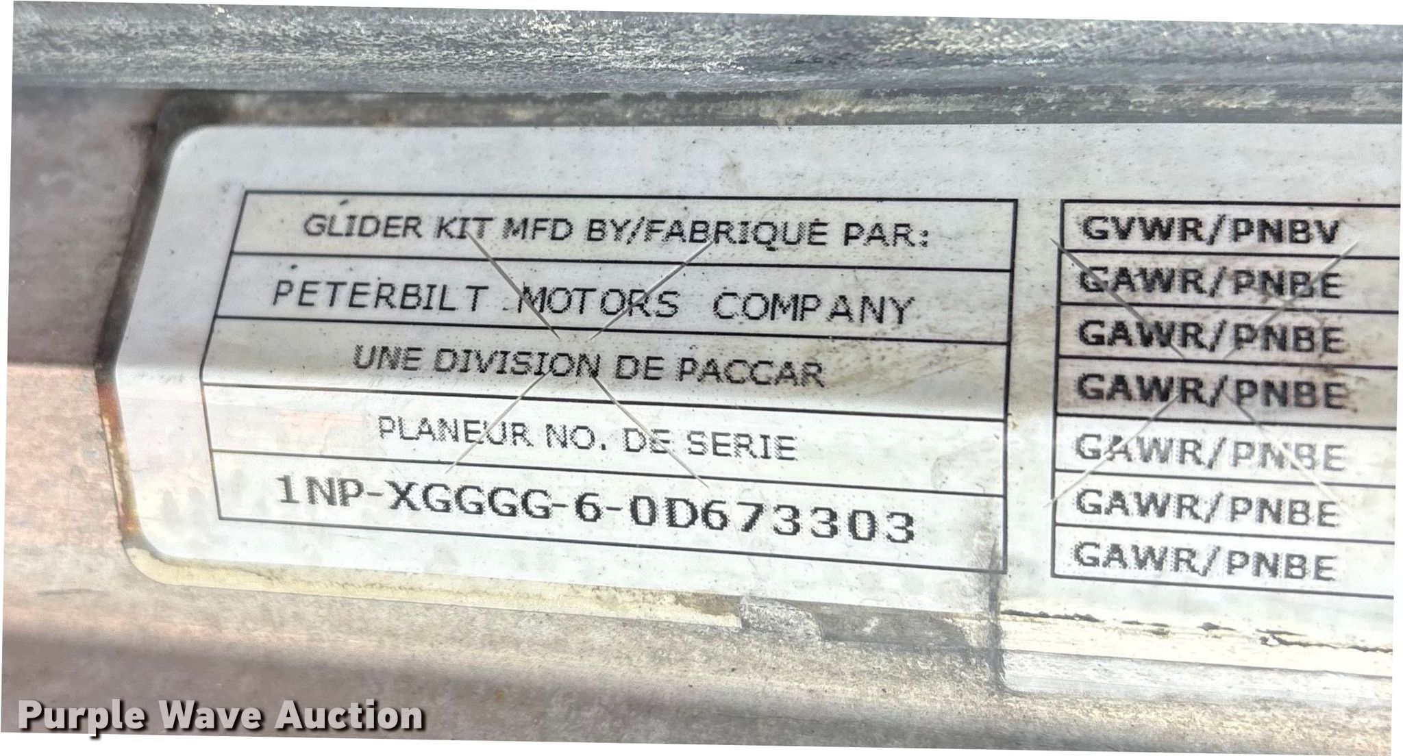 2019 Peterbilt 389 glider kit semi truck. Miles: 506,241 on odometer, VIN: 1NPXGGGG60D673303, Unit #: 93536515. Engine Caterpillar C15, Displacement: 15.2L, Cylinders: 6, Fuel type: Diesel, HP: 550, Engine brake. Transmission Eaton Fuller RTLO-18918B, Manual, Speed: 18. Chassis Axles: Tandem, Differential lock: Full, Suspension: Air Dump valves, Brakes: Air, PTO, Wet kit, GVWR: 60,320 lbs FAWR: 14,320 lbs, IAWR: 23,000 lbs, RAWR: 23,000 lbs. Interior AC, Heat, Power windows, Power locks, Cruise control, Air ride cab, Sleeper Sleeper length: 45", Beds: Single, Rear climate control. Features Deck plate: Aluminum, Fifth wheel type: Air operated, Sliding, Fuel tank: Dual. Tires Size: 11R24.5. Notes Dead battery, Drive shaft disconnected Strap bolt stripped, will not release, Collision damage, Possible wheel hub issues, leak, Unknown operating condition Unit must be towed or hauled. Buyer responsible for all aspects of loadout and removal. Insurance salvage, stored at a secured facility. Please review REQUIRED REMOVAL INSTRUCTIONS. Titles will be distributed after confirmation of payment and removal. Connecticut salvage title. Title distribution may be delayed up to 30 days from verification of funds. Insurance Salvage. Warren, MA 01092