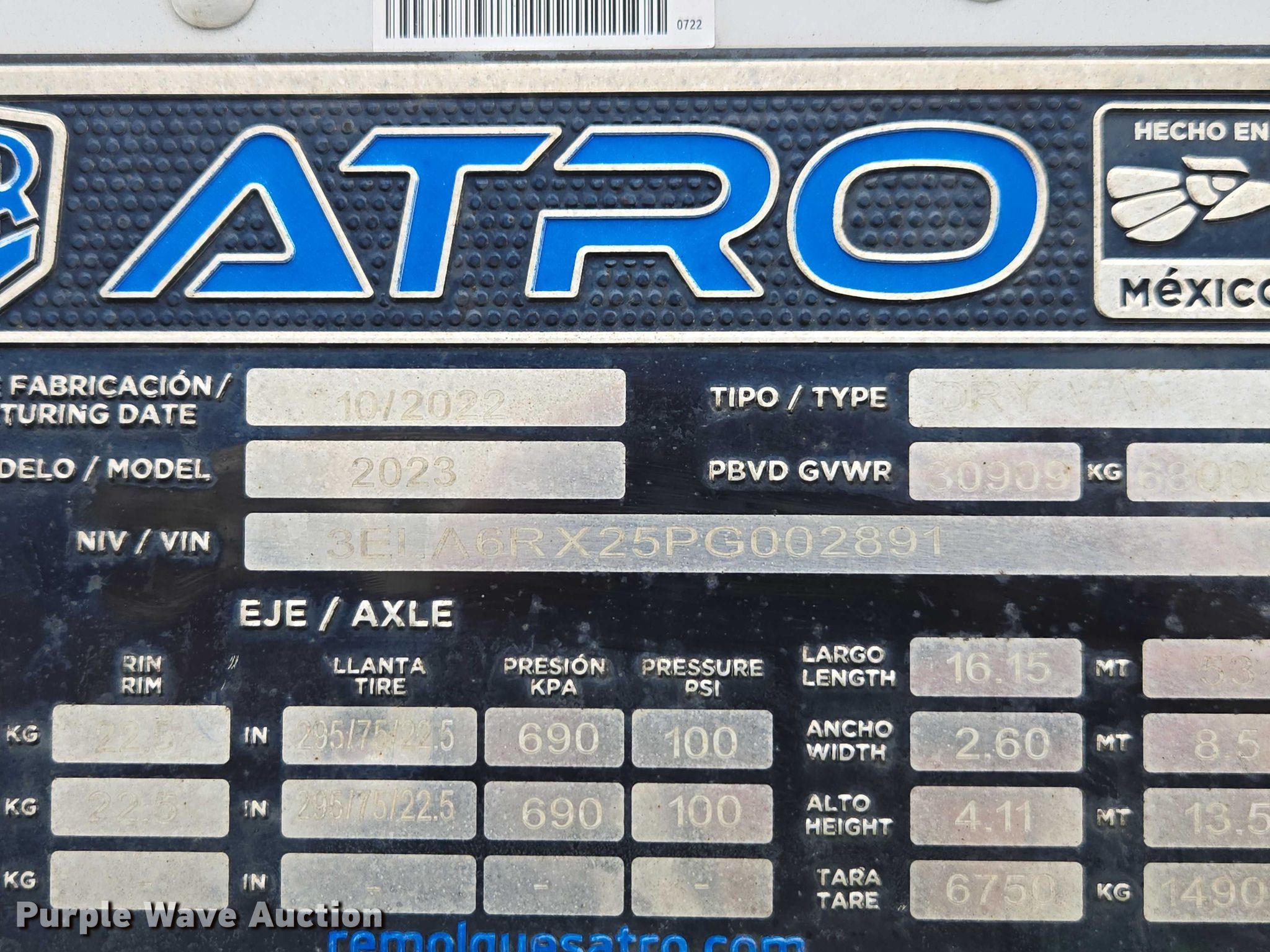 Purple Wave is selling a used Dry Van Trailer in Georgia. This item is a 2023 Atro dry van trailer with the following: VIN: 3ELA6RX25PG002891, Unit #: 73058205
