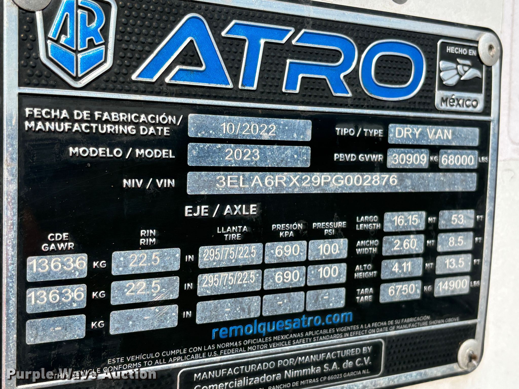 Purple Wave is selling a used Dry Van Trailer in Oregon. This item is a 2023 Atro dry van trailer with the following: VIN: 3ELA6RX29PG002876, Unit #: 73058915