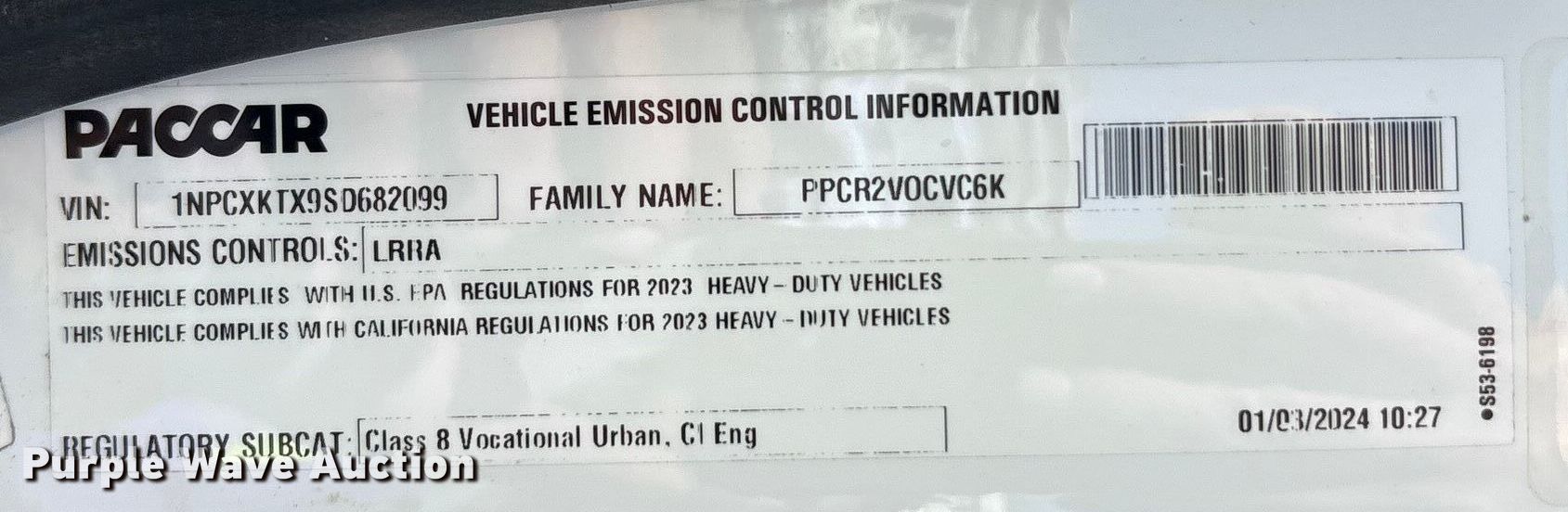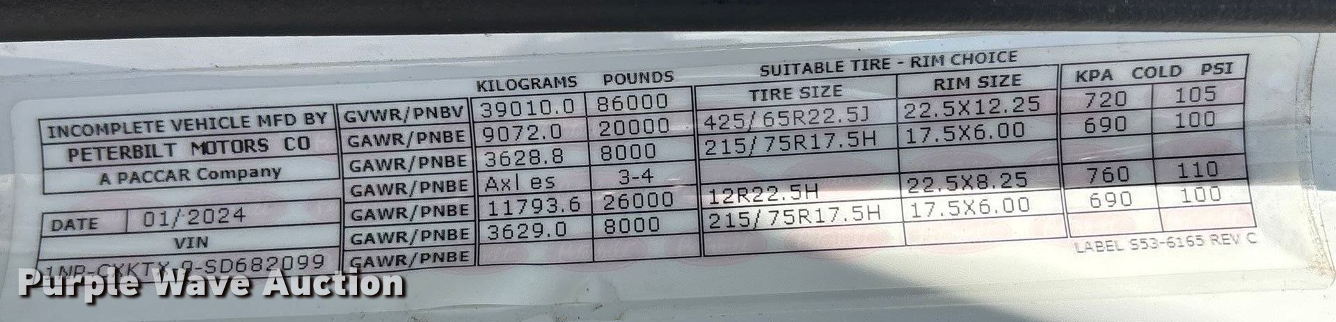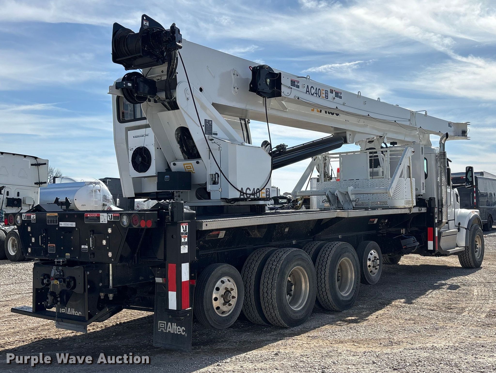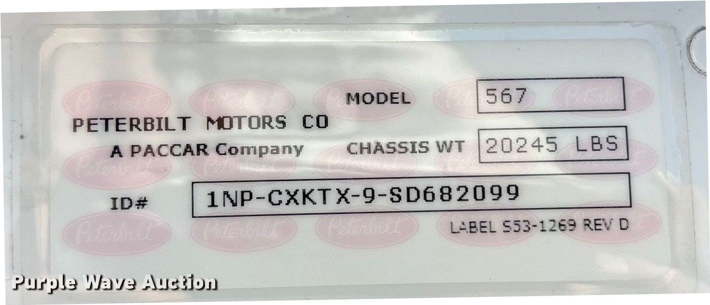 2025 Peterbilt 567 crane truck. Miles: 5,423 on odometer, Miles: Actual unknown, Hours: 235 on meter, VIN: 1NPCXKTX9SD682099, Unit #: 80251685. Engine Paccar MX-11, Displacement: 10.8L, Cylinders: 6, Fuel type: Diesel, Engine brake. Transmission Allison, Automatic. Chassis Axles: 4, Pusher axle Steerable, Tag axle Steerable, Differential lock: Full, Suspension: Air, Brakes: Air, PTO, GVWR: 86,000 lbs FAWR: 20,000 lbs, IAWR: 52,000 lbs, RAWR: 8,000 lbs, Lift axle GAWR: 8,000 lbs. Interior AC, Heat, Heated mirrors, Power windows, Power locks, Cruise control. Features Bed Altec, Serial: 94-1026316611, Length: 27' 8", Width: 8', Crane 2024 Altec AC40E-152S Serial: 0624JA0273, Boom, Boom controls, Crane ball & hook, Certification valid through: 07/12/2025, Manuals, Platform basket Dimensions: 6' L x 3' W. Tires Front: 425/65R22.5, Rear: 12R22.5, Lift axle: 216/75R17.5. Notes Collision damage, Front driver side outrigger issues, Fuel cap missing, DEF cap missing, Non-operational PTO, Boom sections missing. Buyer responsible for all aspects of loadout and removal. Insurance salvage, stored at a secured facility. Please review REQUIRED REMOVAL INSTRUCTIONS. Titles will be distributed after confirmation of payment and removal. Texas salvage title. Mileage has not been verified. Odometer discrepancy will be marked on the title. Title distribution may be delayed up to 30 days from verification of funds. Insurance Salvage. 1701 East Belt Line Road. Wilmer, TX 75172