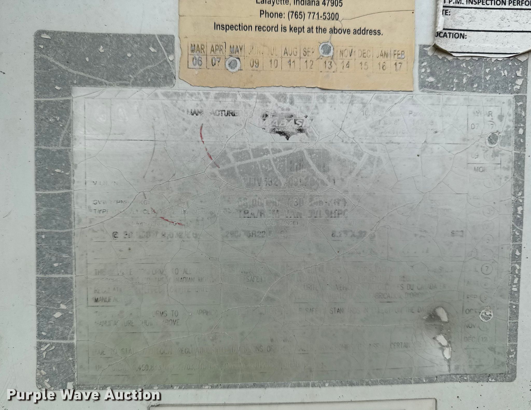 2009 Wabash dry van trailer. VIN: 1JJV532W09L264431, Unit #: 75352705. Dimensions Overall Length: 53', Width: 102", Rear door / ramp 110" L x 98" W. Features Deck type: Wood, E-track rail system. Chassis Landing gear: Dual, Suspension: Spring, Brakes: Air, Axles: Tandem Sliding, GVWR: 68,000 lbs. Tires Steel wheels, Size: 275/80R22.5. Fleet inventory reduction, stored at a secured facility. Please review REQUIRED REMOVAL INSTRUCTIONS. Titles will be distributed after confirmation of payment and removal. Georgia title. Title distribution may be delayed up to 30 days from verification of funds. Lazer Logistics. Cedar Rapids, IA 52404