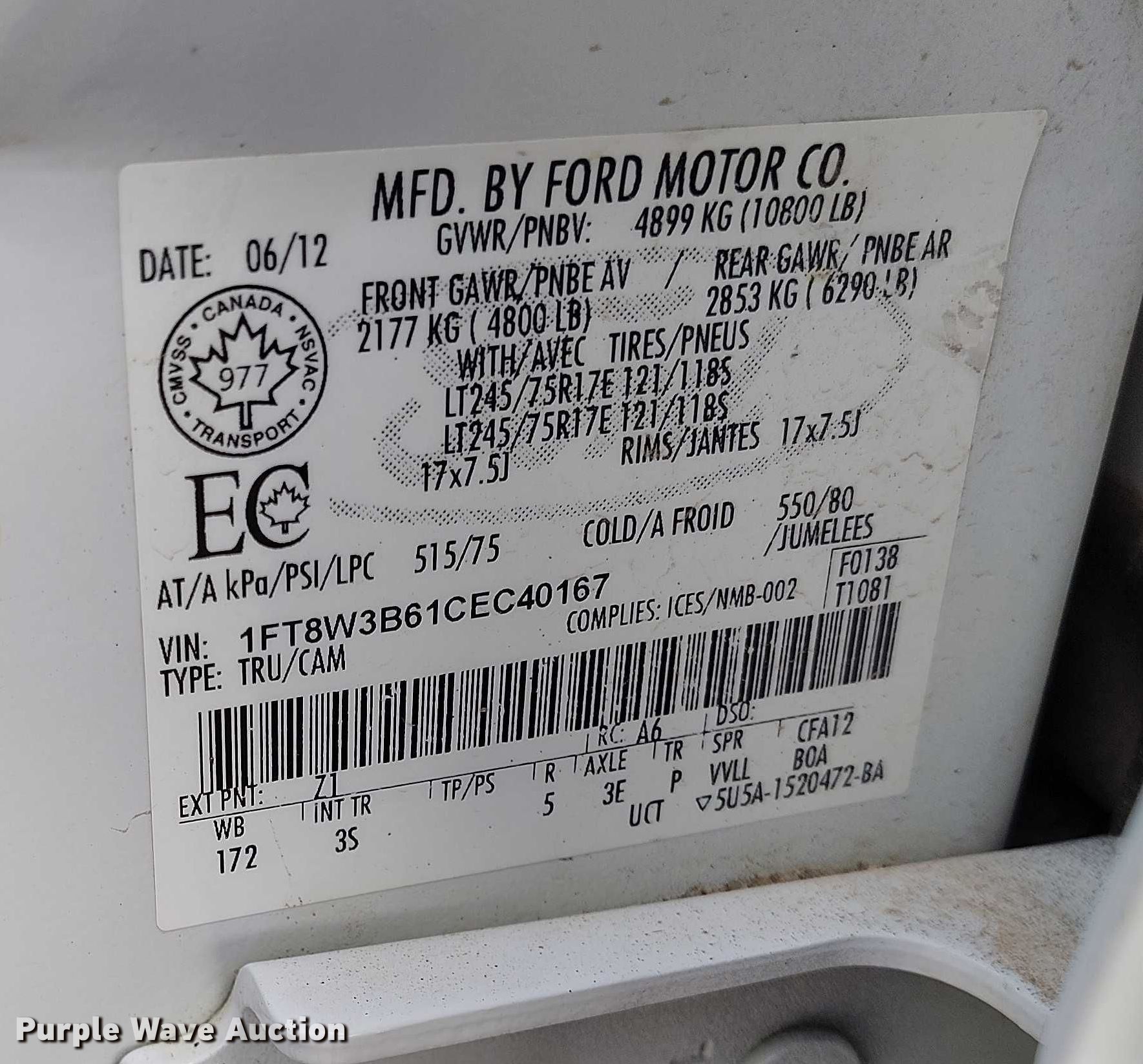 - VIN: 1FT8W3B61CEC40167