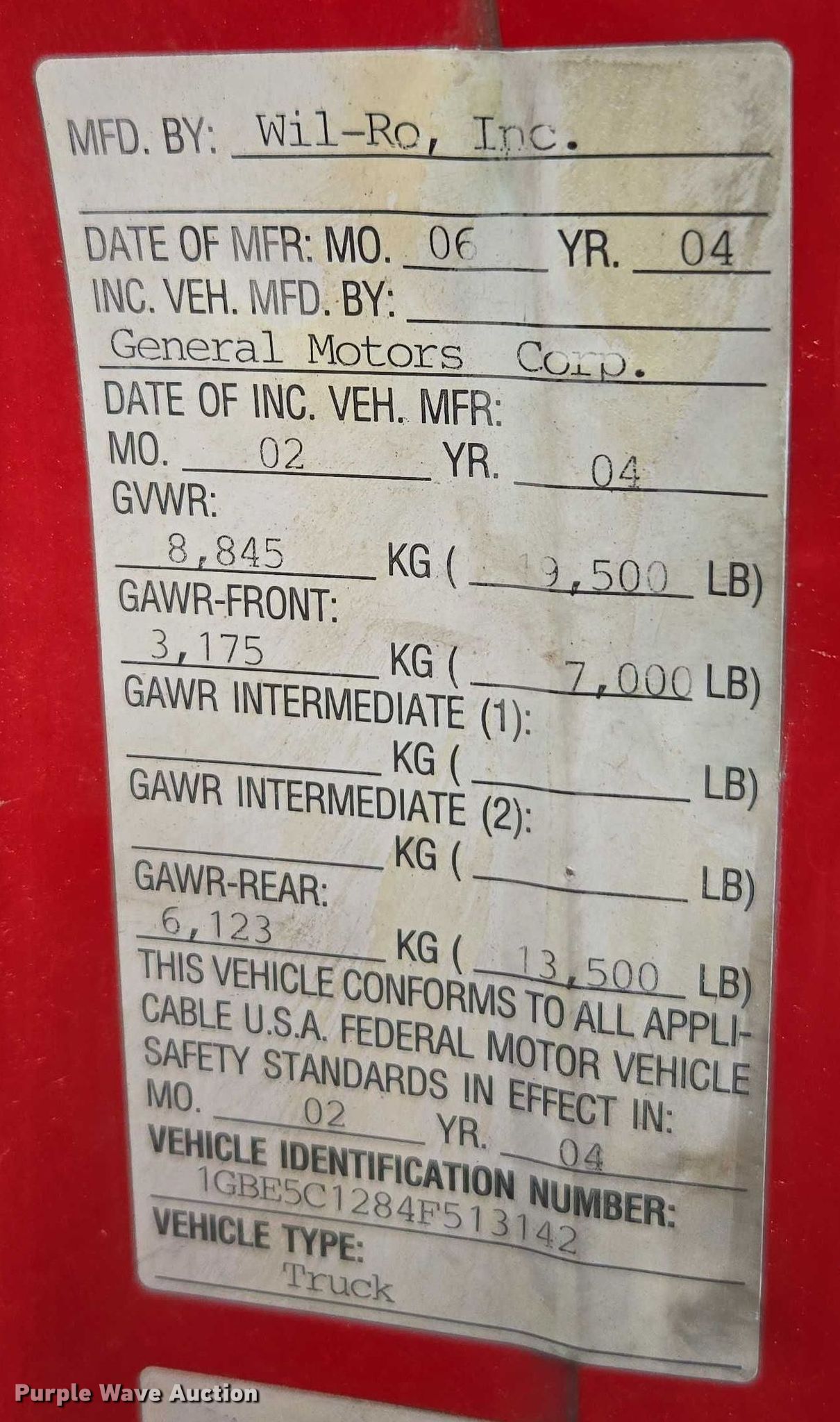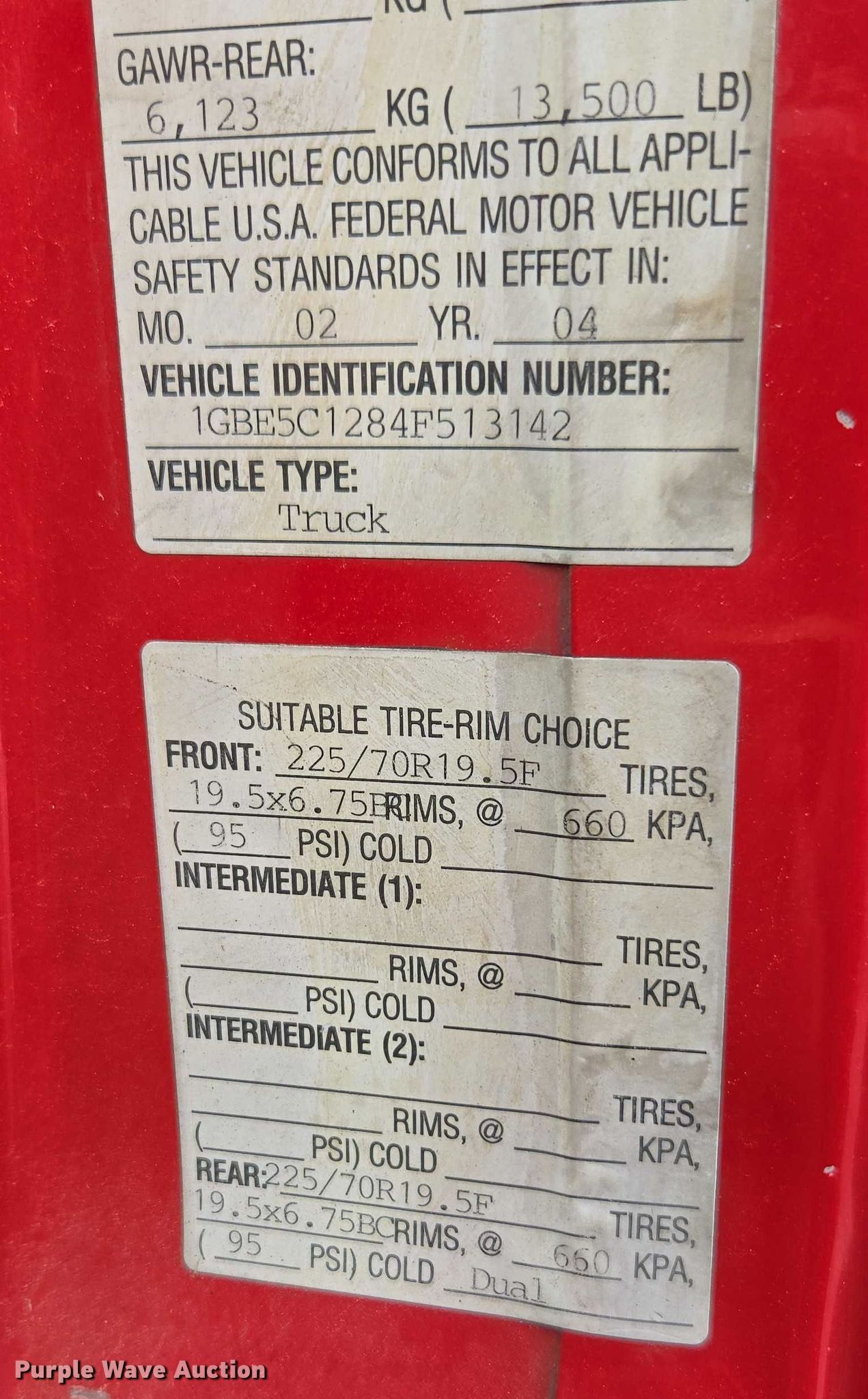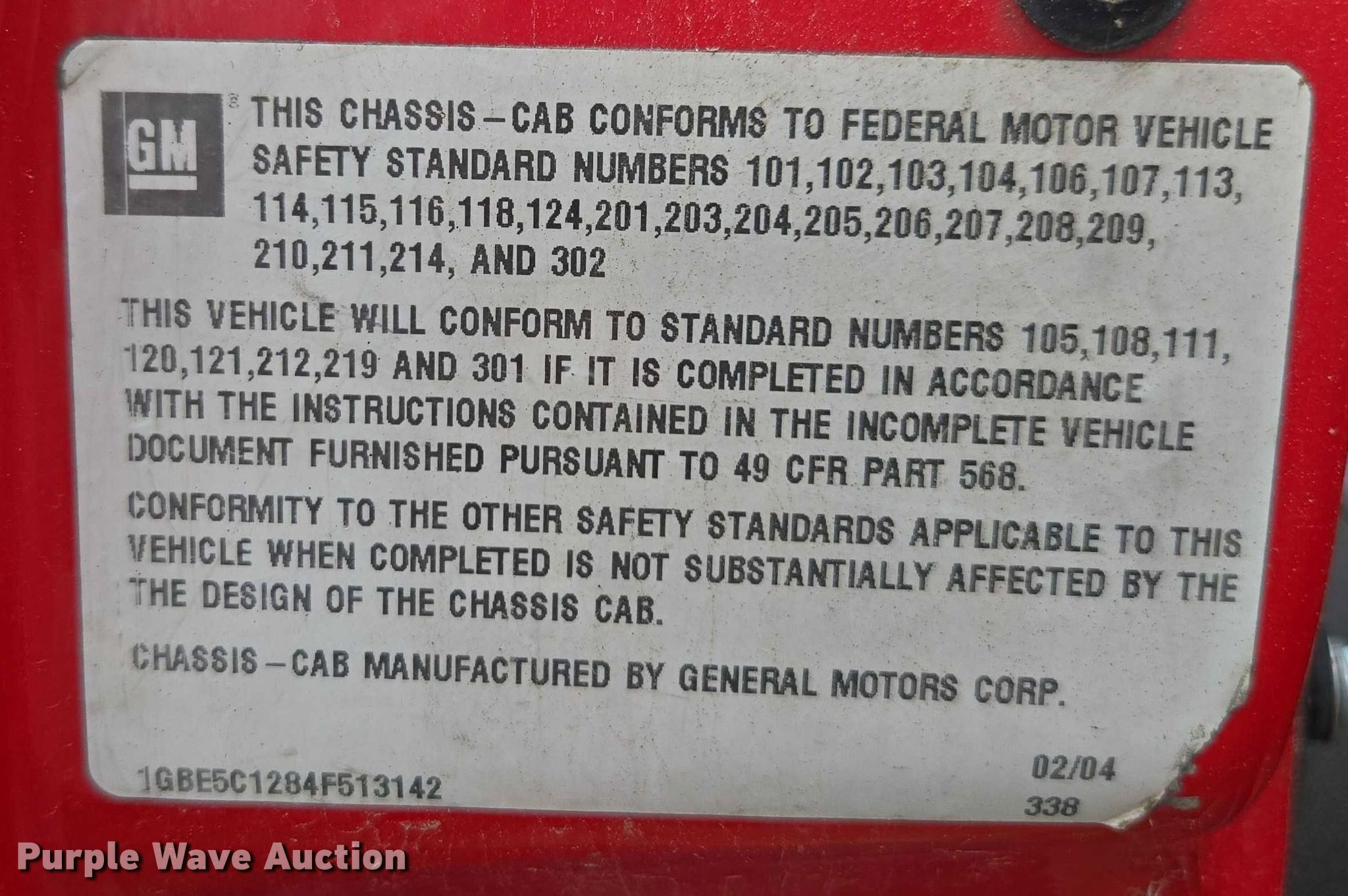 - VIN: 1GBE5C1284F513142