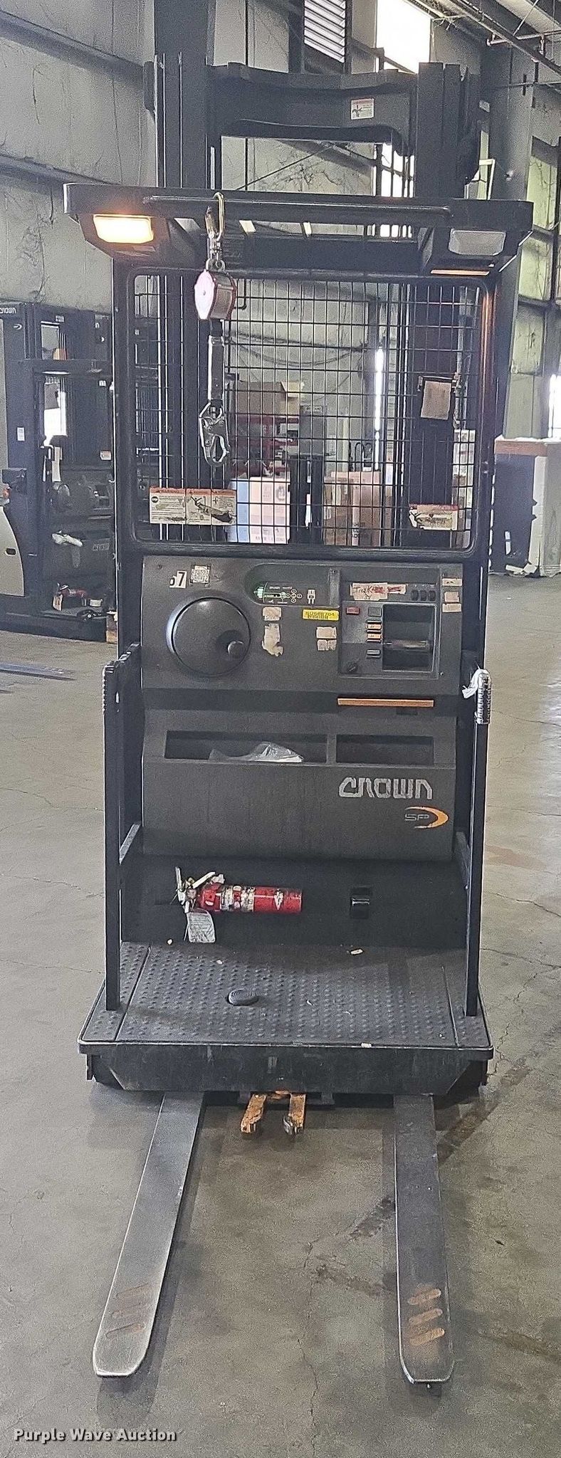 Purple Wave is selling a used Warehouse Forklift in Louisiana. This item is a 2018 Crown SP3520-30 order picker with the following: Hours: 2,208 on meter, Miles or hours may vary, unit still in use, Serial: 1A525157, Unit #: SFS2926