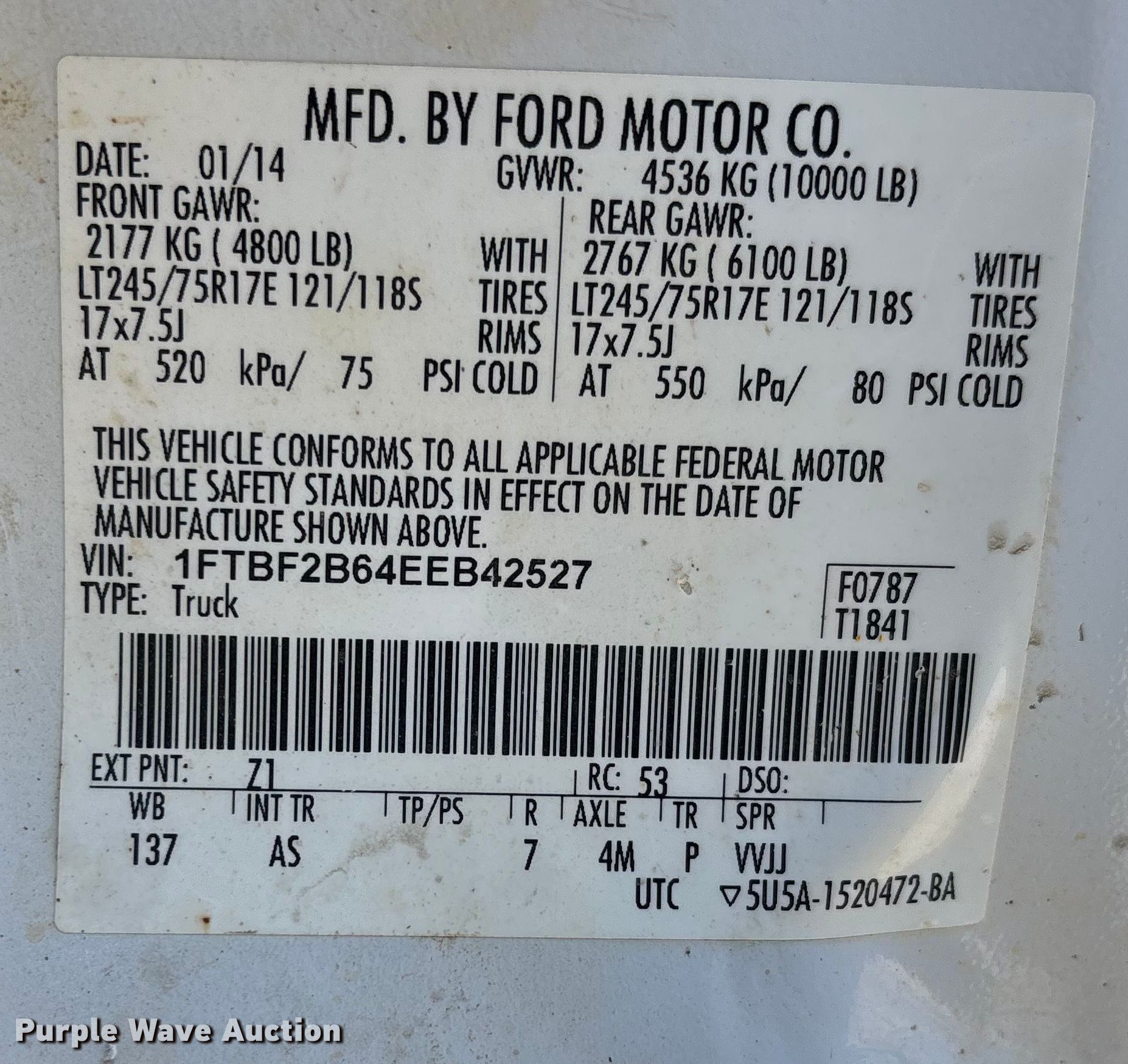 - VIN: 1FTBF2B64EEB42527