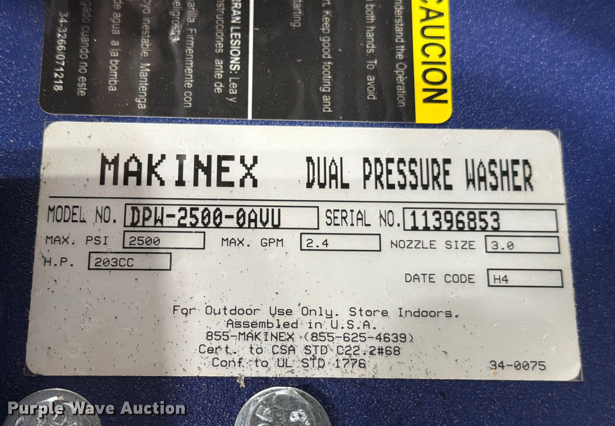 Take a look at this used Makinex DPW-2500 pressure washer being sold on March 11th, 2026 in the Wednesday March 11 Vehicles and Equipment Auction made by Makinex. Take a look at all of the item information below or take a look at similar auctions for Pressure Washer.