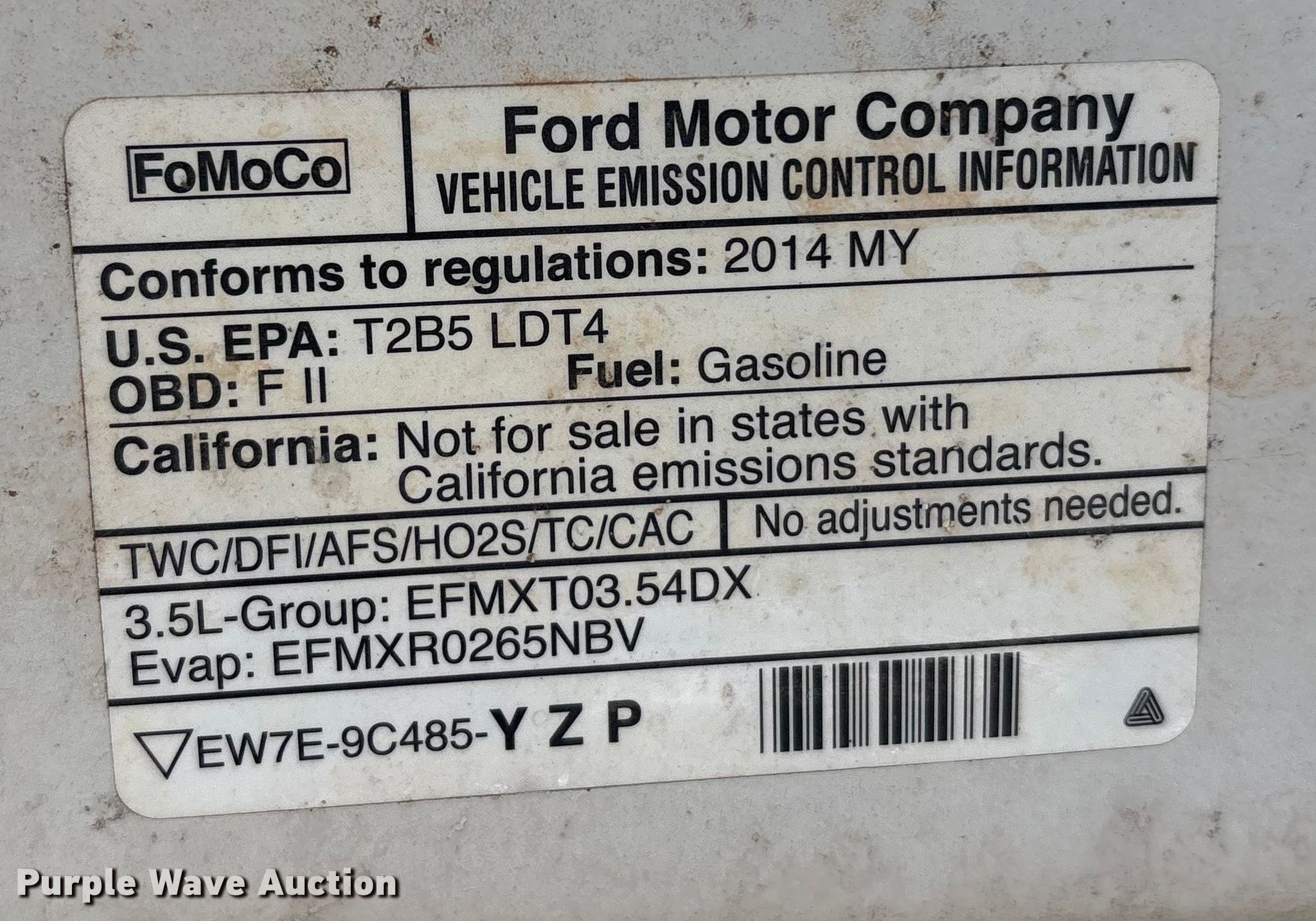 2014 Ford F150 Crew Cab pickup truck. Miles: 264,000 on odometer, VIN: 1FTFW1ET0EKE80778. Engine Displacement: 3.5L, Cylinders: 6, Fuel type: Gas. Transmission Automatic, Four wheel drive. Interior AC, Heat, Seat: Power passenger, Power windows, Power locks, Cruise control, Backup camera, Brake controller, Powered sunroof. Tires Size: 275/55R20. Notes Windshield chipped or cracked, Jump start required during on-site data collection, Driver side power seat controls missing, Possible engine issues. Oklahoma title. Title distribution may be delayed up to 30 days from verification of funds. Hull's Environmental Services, Inc.. 6988 Reck Road. Wilson, OK 73463