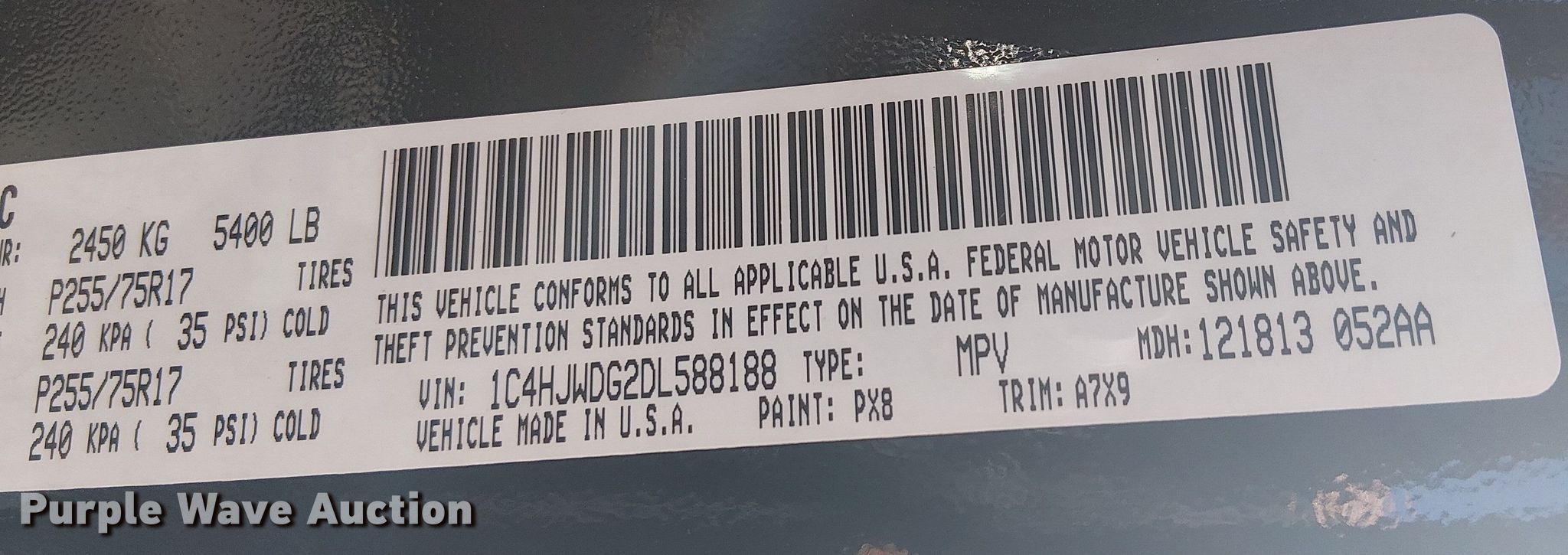 - VIN: 1C4HJWDG2DL588188