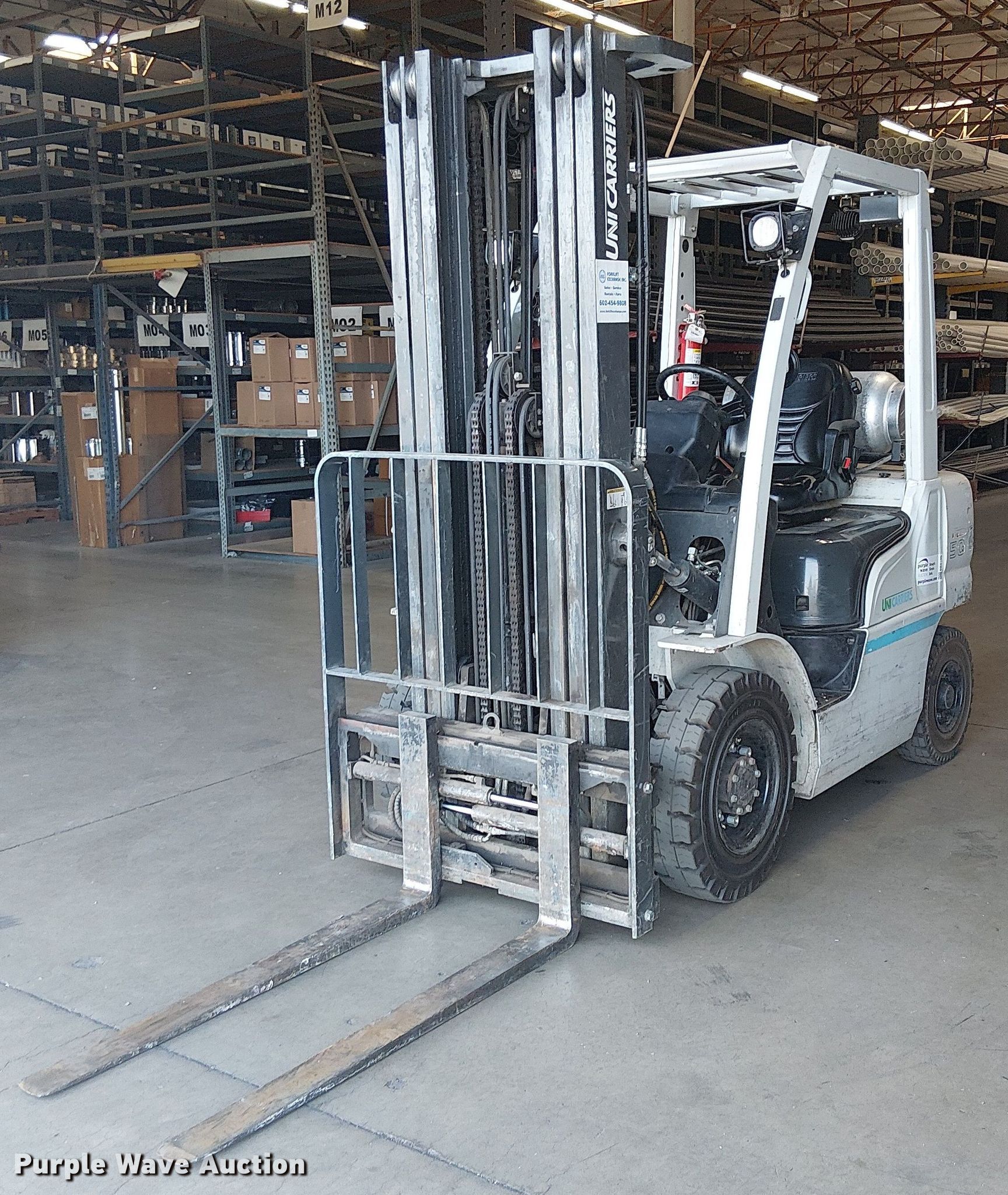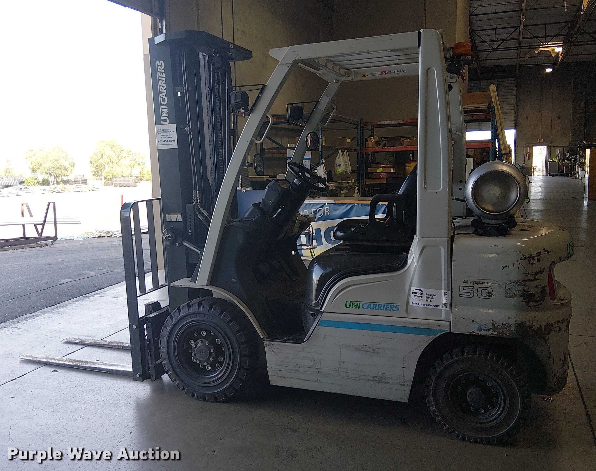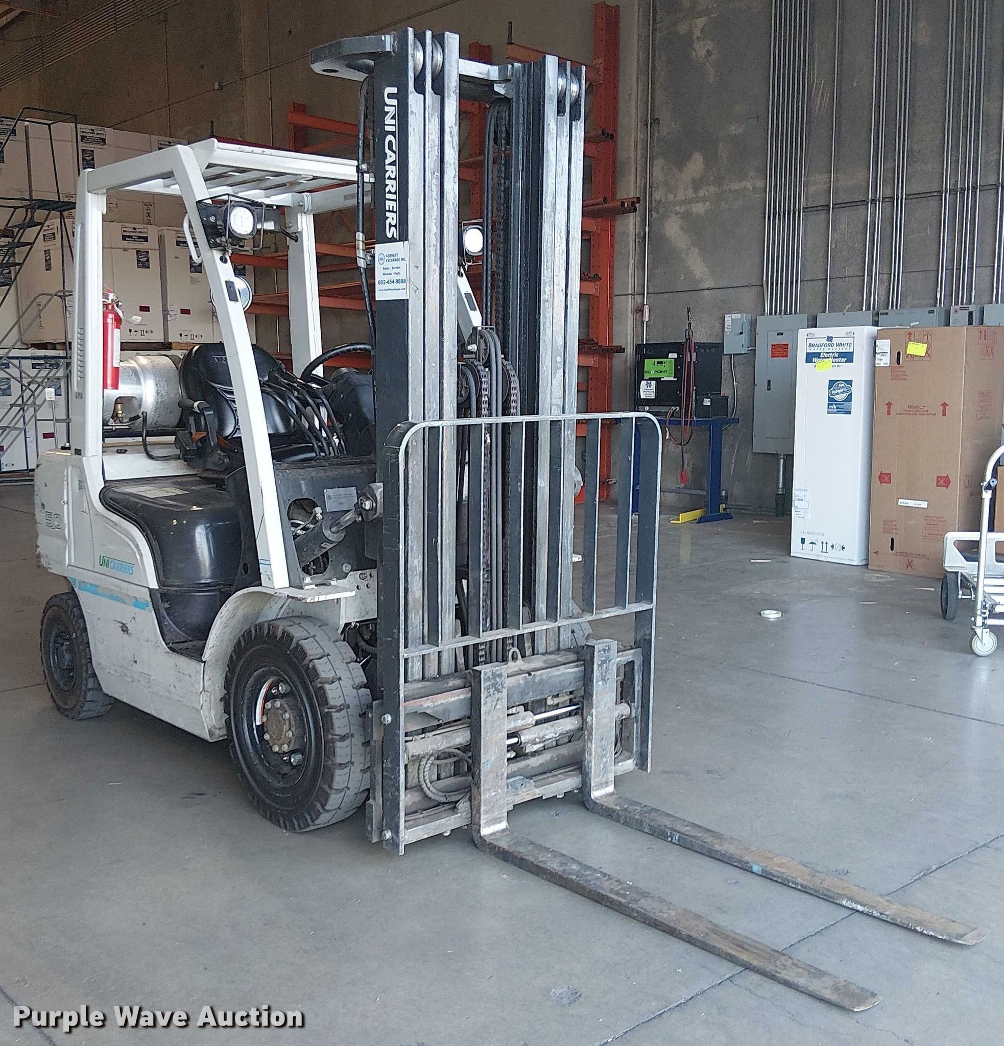 Purple Wave is selling a used Cushion Tire or Pneumatic Forklift in Arizona. This item is a 2017 UniCarriers PF50 forklift with the following: Hours: 2,619 on meter, Miles or hours may vary, unit still in use, Serial: P1F2-9H22032, Unit #: SFS2985