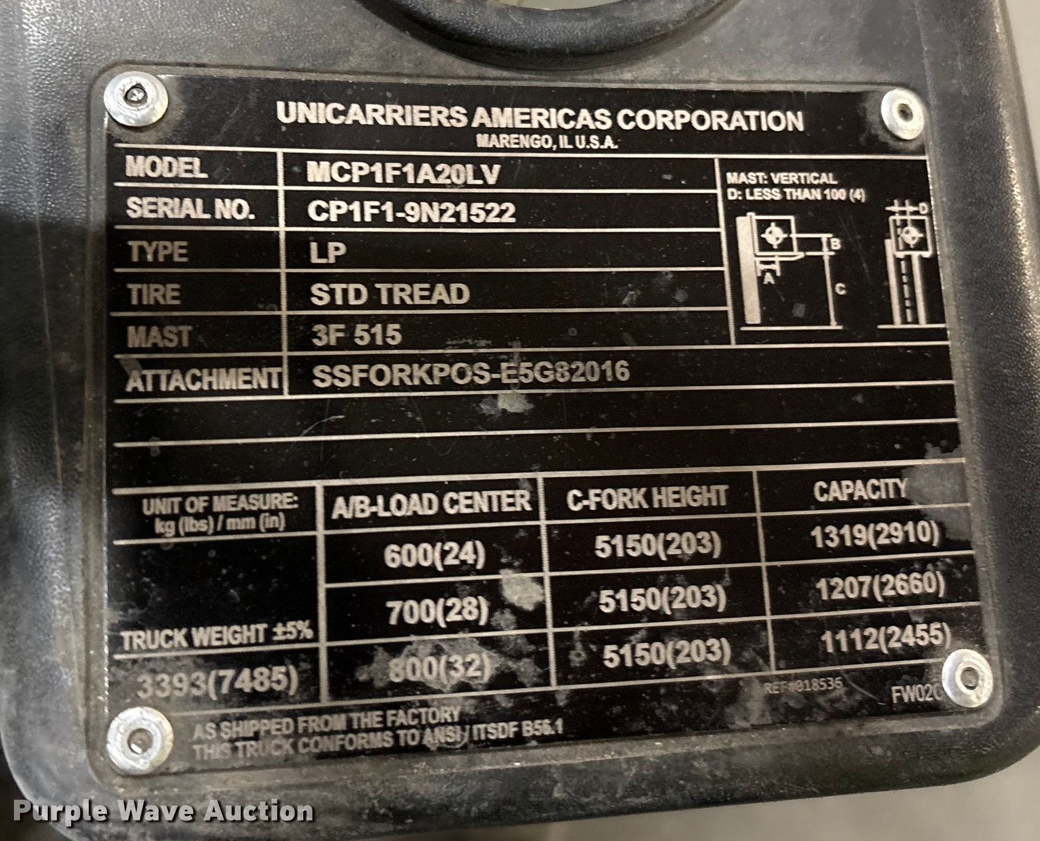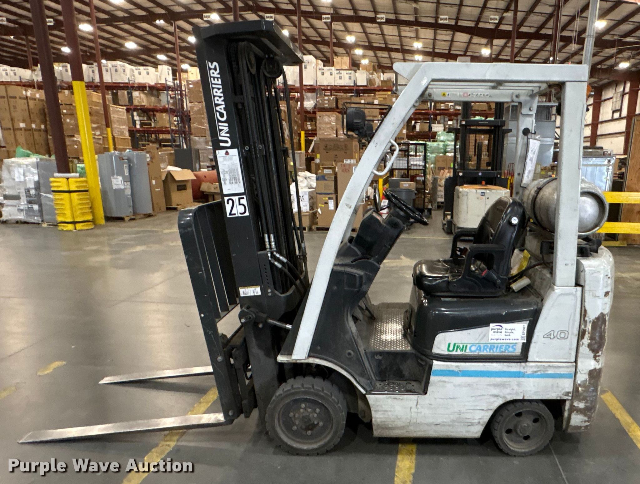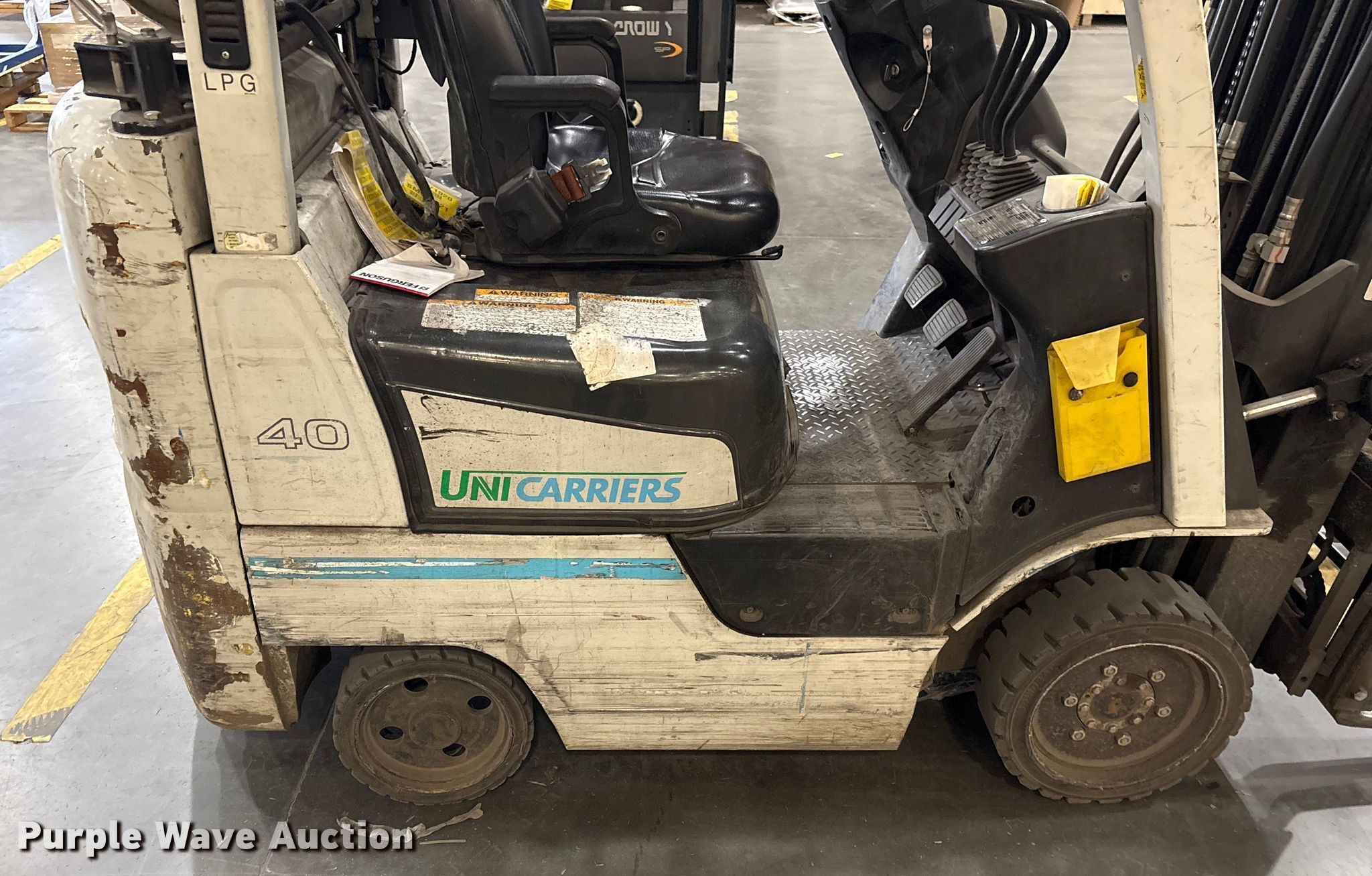 Purple Wave is selling a used Cushion Tire or Pneumatic Forklift in North Carolina. This item is a 2017 UniCarriers CFS40 forklift with the following: Hours: 7,862 on meter, Serial: CP1F1-9N21522, Unit #: SFS2963