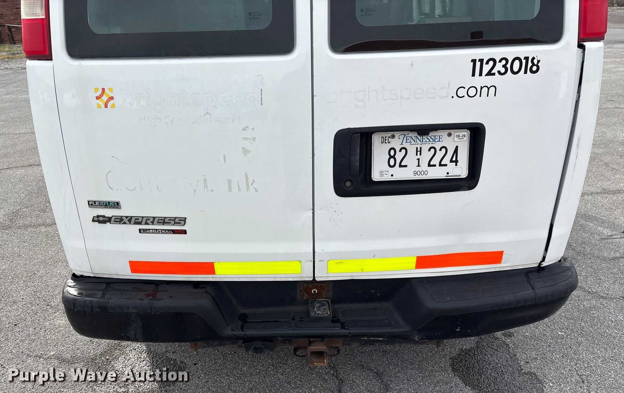 2012 Chevrolet Express 1500 van. Miles: 112,231 on odometer, VIN: 1GCSHAF42C1123783, Unit #: 1123018. Engine Displacement: 5.3L, Cylinders: 8, Fuel type: Gas. Transmission Automatic, All wheel drive. Interior AC, Heat. Tires Size: 245/70R17. Notes Passenger mirror damaged, Windshield chipped or cracked, Jump start required during on-site data collection. Tennessee title. Title distribution may be delayed up to 30 days from verification of funds. Brightspeed. Kingsport, TN 37664
