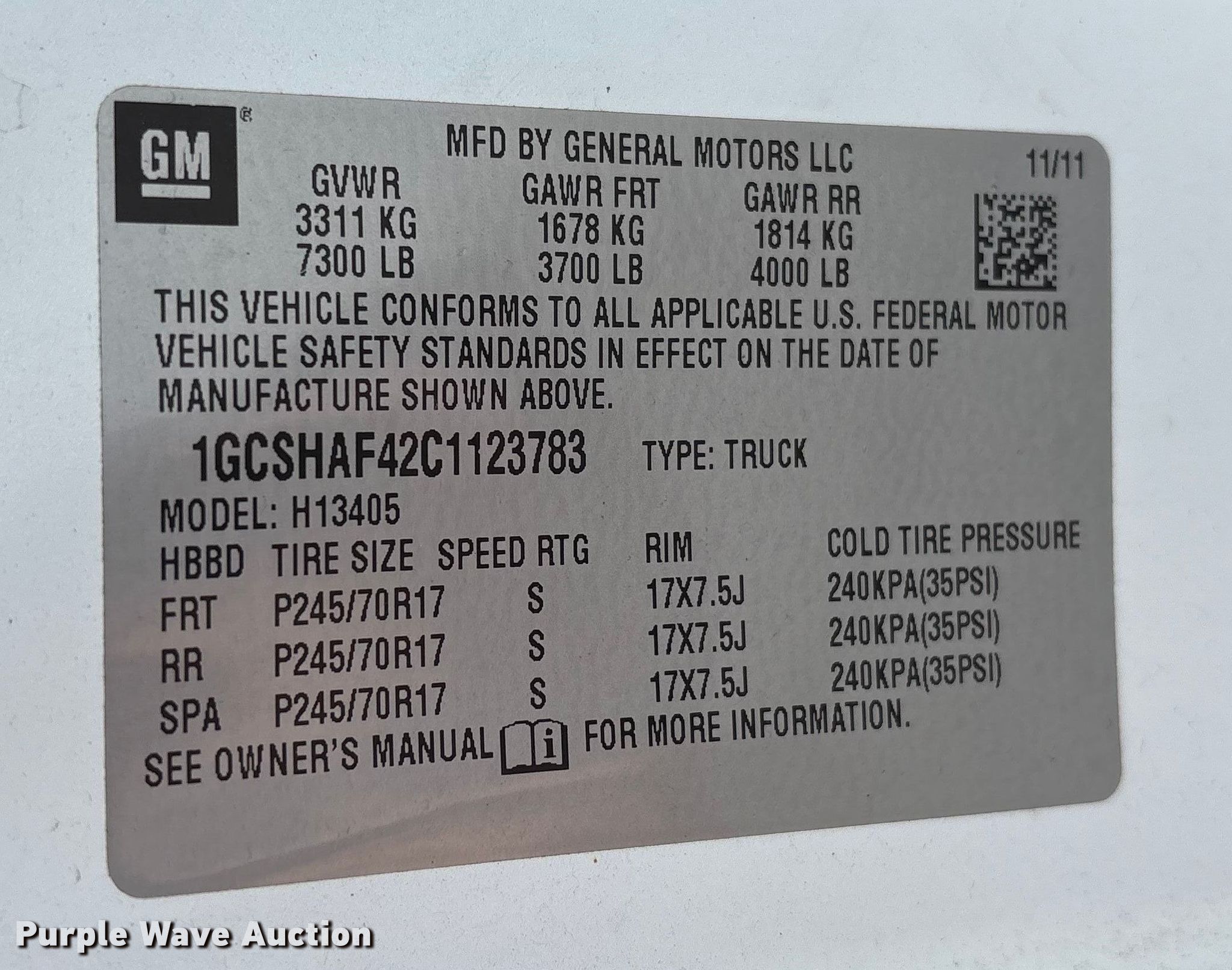 - VIN: 1GCSHAF42C1123783