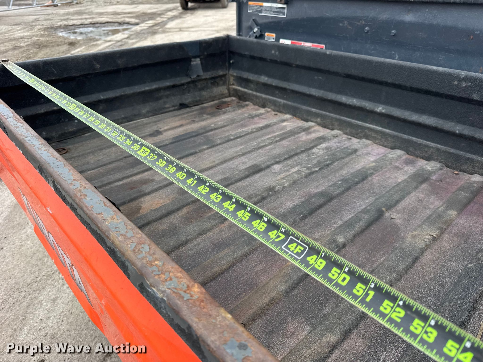 2015 Kubota RTV-X1100C utility vehicle. Miles: 13,716 on odometer, Hours: 2,357 on meter, VIN: A5KC2GDBEFG027166. Engine Kubota D1105, Cylinders: 3, Fuel type: Diesel, Electric start. Transmission Automatic. Chassis Four wheel drive/ All wheel drive. Operators station Enclosed cab, AC, Heat. Features Grille guard, Dump bed 43" L x 60" W, Dump bed type: Electric/ Hydraulic. Tires Size: 25x10.00-25. Notes Transmission housing cracked. Transfer of ownership documentation will be a bill of sale. McLoughlin Landscaping. Franklin Park, IL 60131