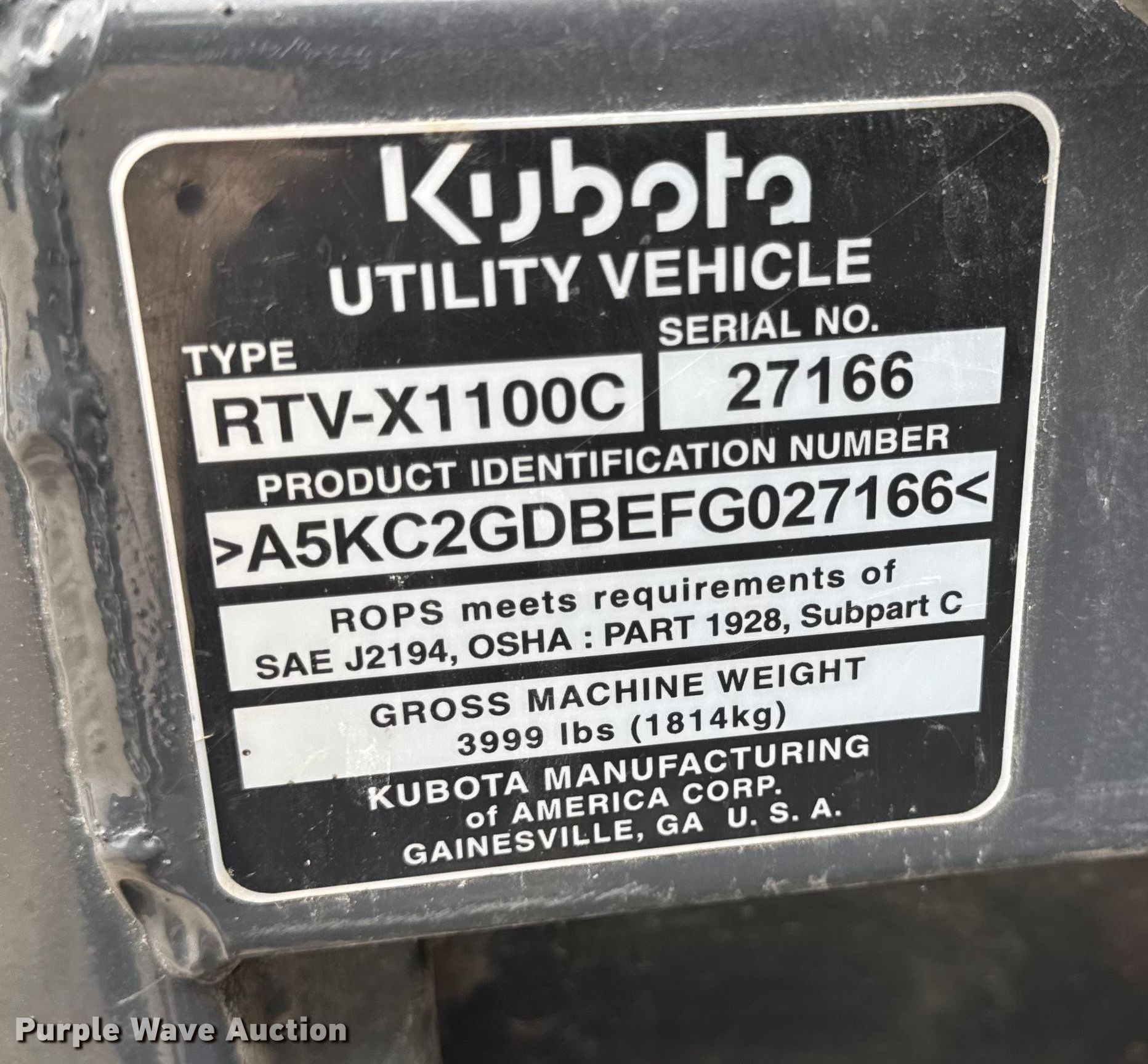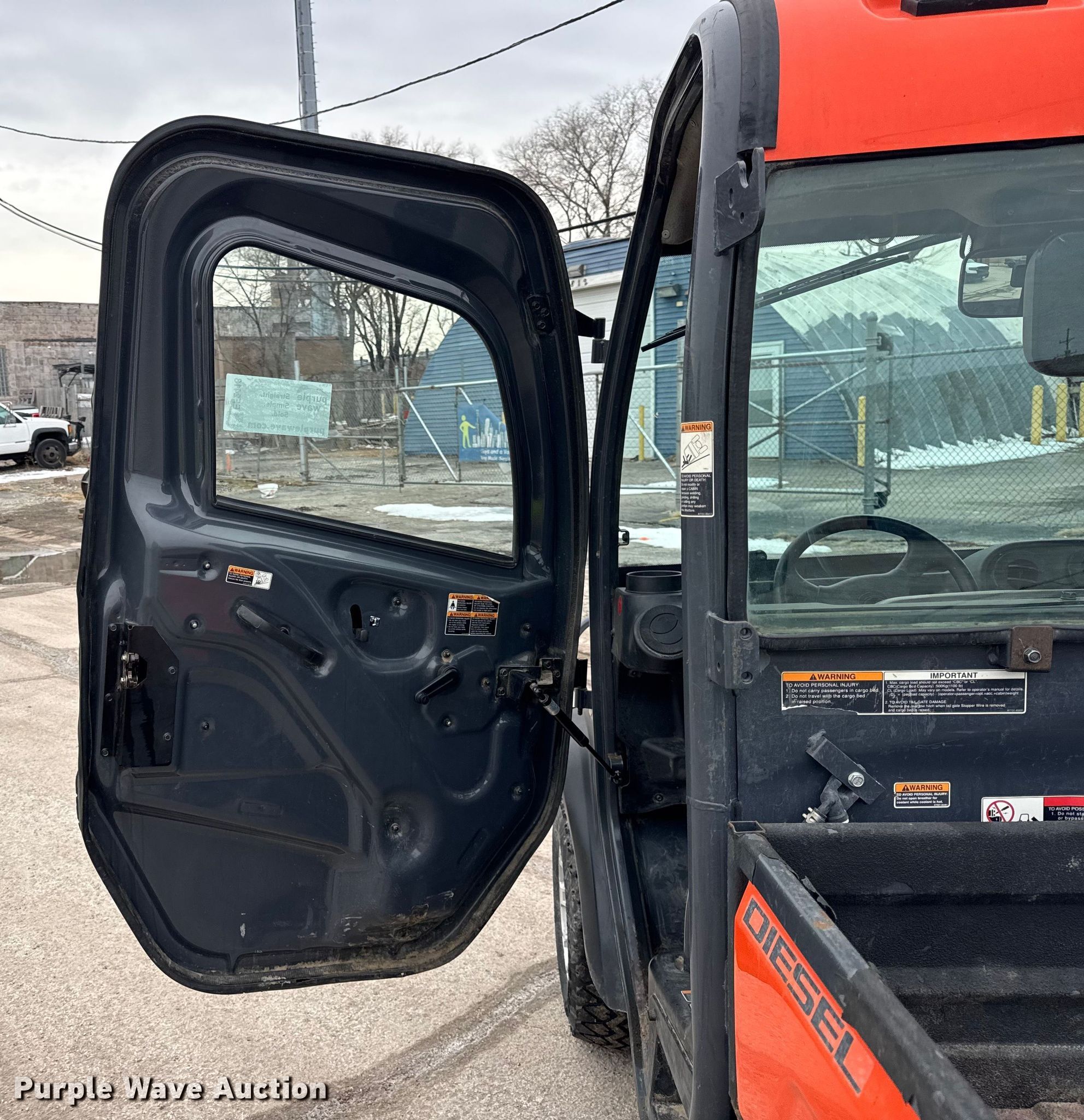 Purple Wave is selling a used Utility Vehicle in Illinois. This item is a 2015 Kubota RTV-X1100C utility vehicle with the following: Miles: 13,716 on odometer, Hours: 2,357 on meter, VIN: A5KC2GDBEFG027166