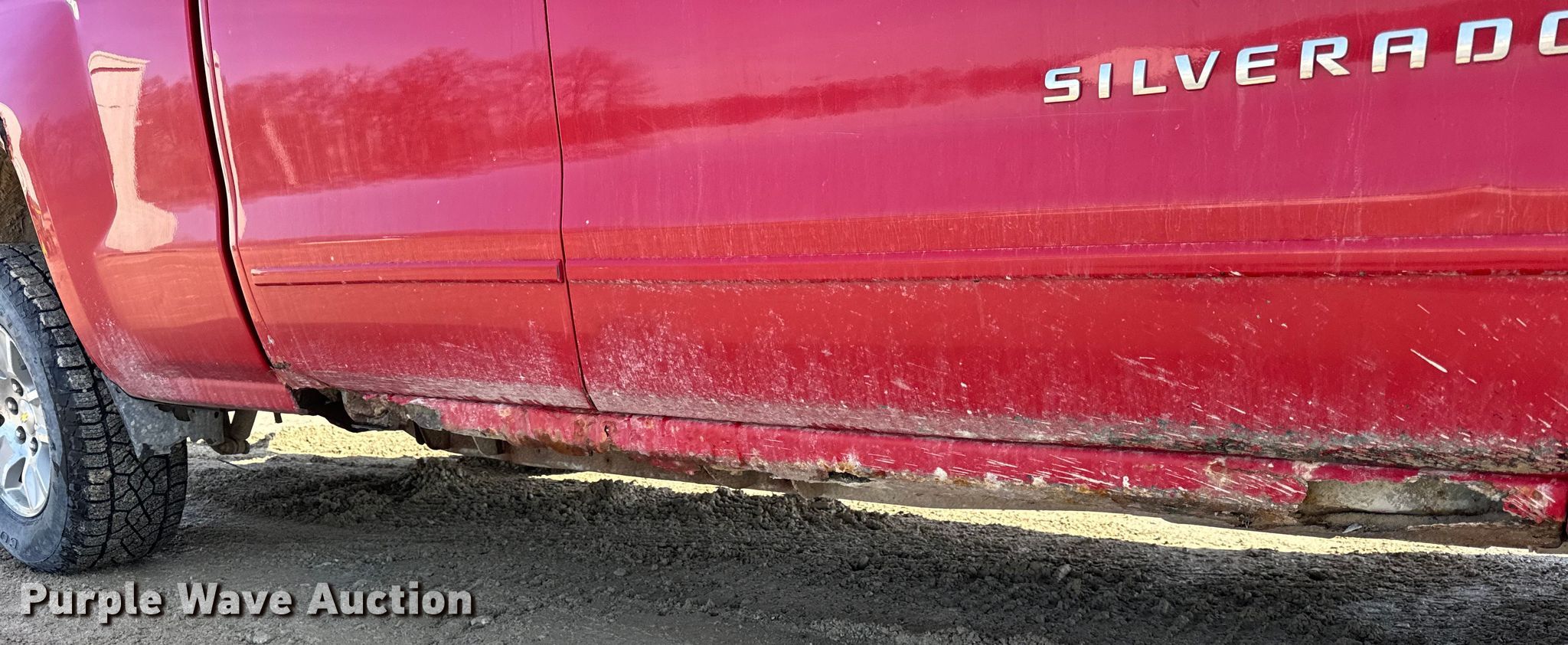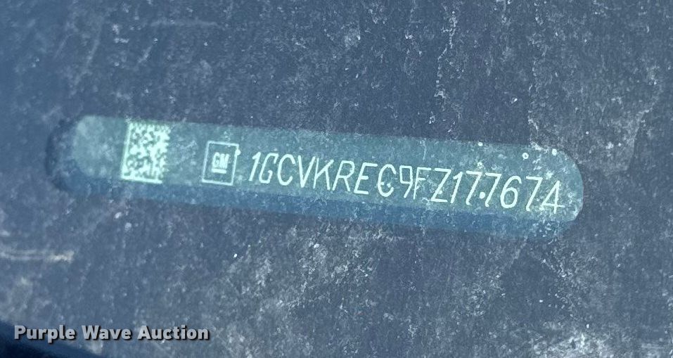2015 Chevrolet Silverado 1500 Ext. Cab pickup truck. Miles: 178,736 on odometer, Hours: 6,483 on meter, VIN: 1GCVKREC9FZ177674. Engine Displacement: 5.3L, Cylinders: 8, Fuel type: Gas. Transmission Automatic, Four wheel drive. Interior AC, Heat, Heated mirrors, Power windows, Power locks, Cruise control, Brake controller. Tires Size: 265/70R17. Notes Dash warning indicator: TPMS. Minnesota title. Christensen Family Farms. Kansas, IL 61933