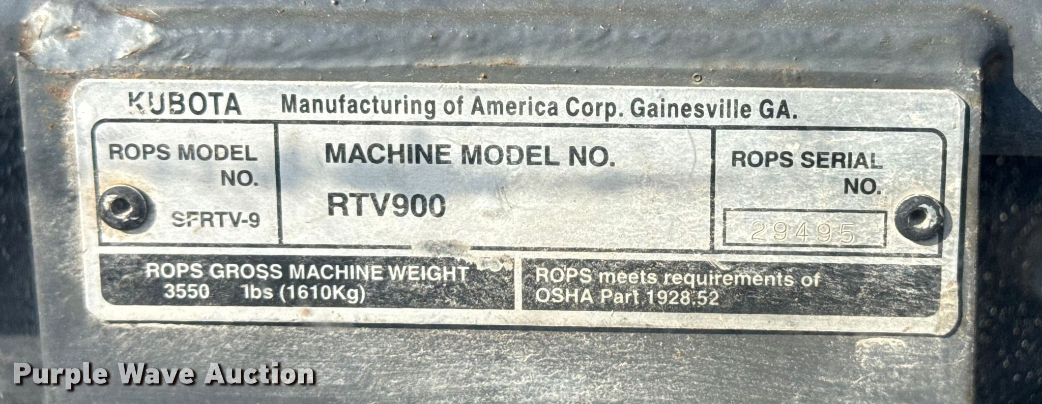 Purple Wave is selling a used Utility Vehicle in Oklahoma. This item is a 2011 Kubota RTV900 utility vehicle with the following: Hours: 4,920 on meter, VIN: A5KB1FDAABG0C1627
