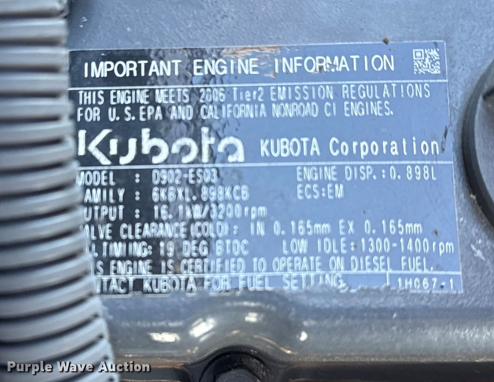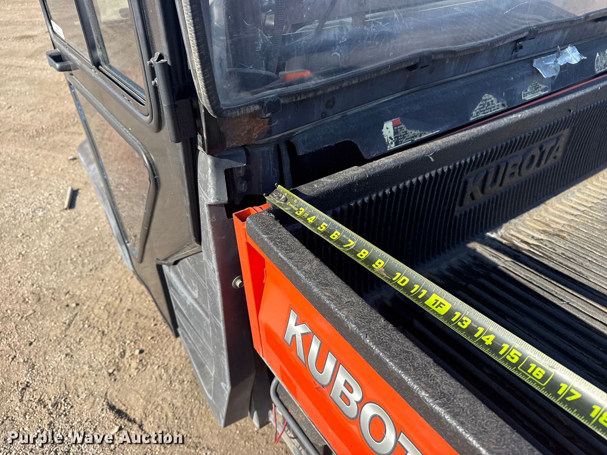2001 Kubota RTV900 utility vehicle. Hours: 8,584 on meter, VIN: KRTV900A61063118. Engine Kubota D902-ES03, Displacement:.898L, Cylinders: 3, Fuel type: Diesel, kW: 16, Electric start. Transmission Automatic. Chassis Four wheel drive/ All wheel drive. Operators station Enclosed cab. Features Receiver hitch, 49" L x 54" W, Dump bed type: Electric/ Hydraulic. Tires Size: 25x10.00-12 NHS. Transfer of ownership documentation will be a bill of sale. Collinsville, OK 74021